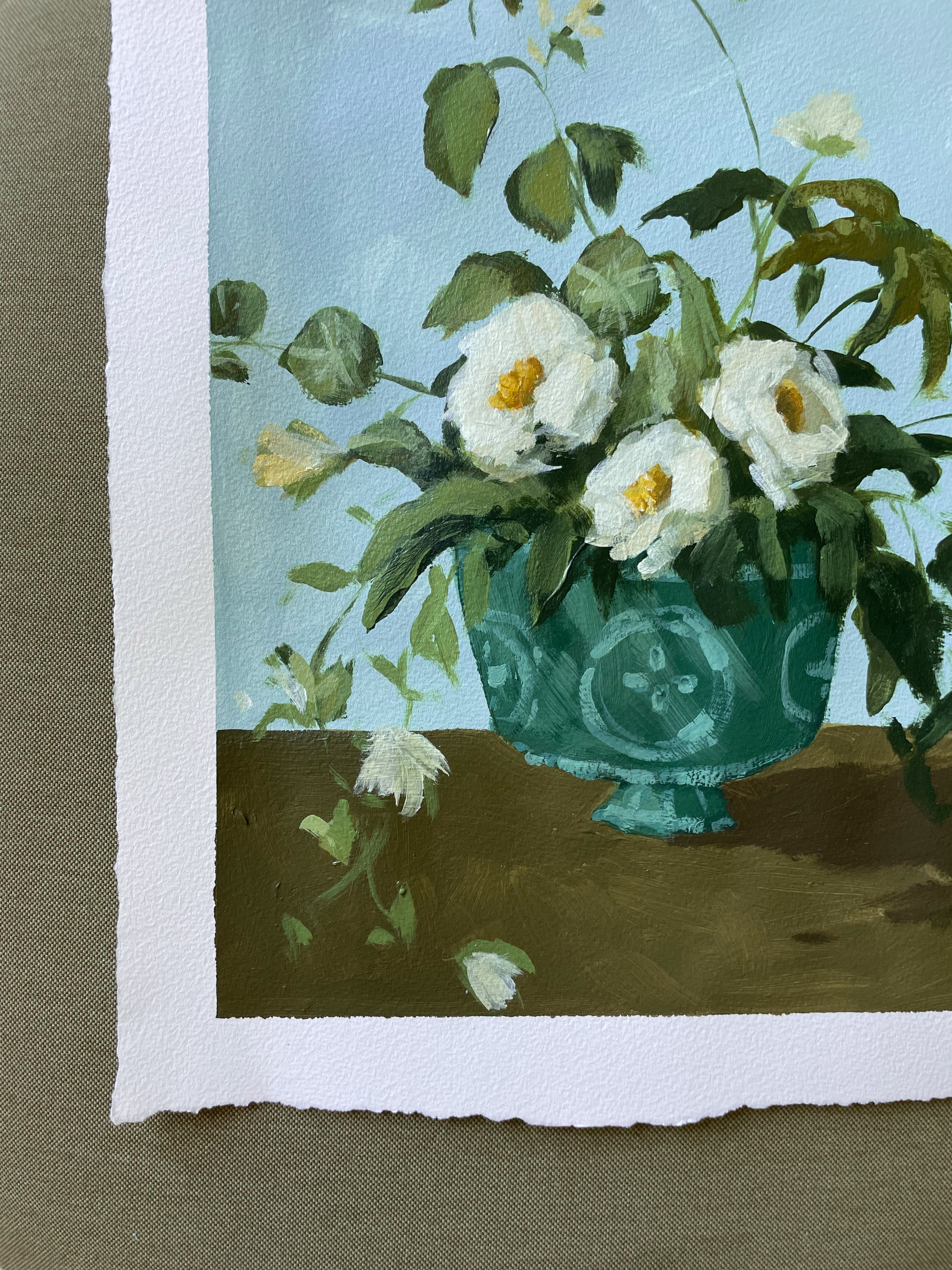 Christine hopes to create artwork that strikes the balance of fun and timeless, in an effortless manner. Composition and color harmony are a distinctive part of her work. Her palettes and subject matter are heavily influenced by her upbringing along the east coast of Florida. She hopes to bring everyday scenes to life through a new perspective and unexpected moments of color. Christine paints entirely from the three primaries (red, yellow + blue) and white. This has helped her gain a strong understanding of color theory.