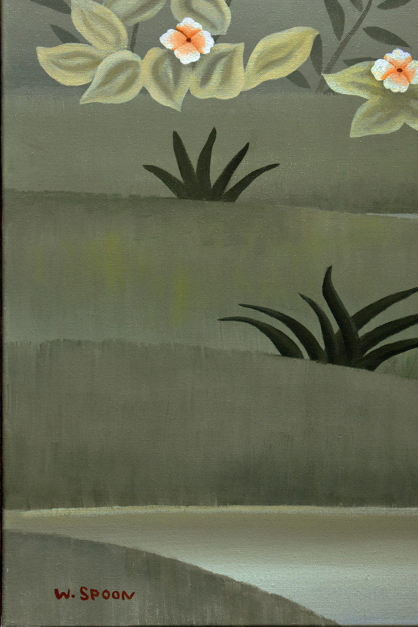 Wilfred Spoon is a painter working in the SC Lowcountry. Born in Charlotte, NC in 1960 he earned his MFA at Parsons School of design in New York in 1987. His chosen media is oil painting. His paintings explore traditional landscapes, still lifes, as well as interiors. His still lifes and interiors search the mystery of the everyday while maintaining an emphasis on structure. His landscapes are a celebration of nature and fantasy. Sometimes dark but always optimistic. He strives to express what the artist knows rather than what he sees, and so the facts of physical reality are largely sifted through the mind and personality of the painter. His paintings demonstrate his love for the naive as well as his art education. This combination infuses his work with a surprising clarity in an unexpected world.