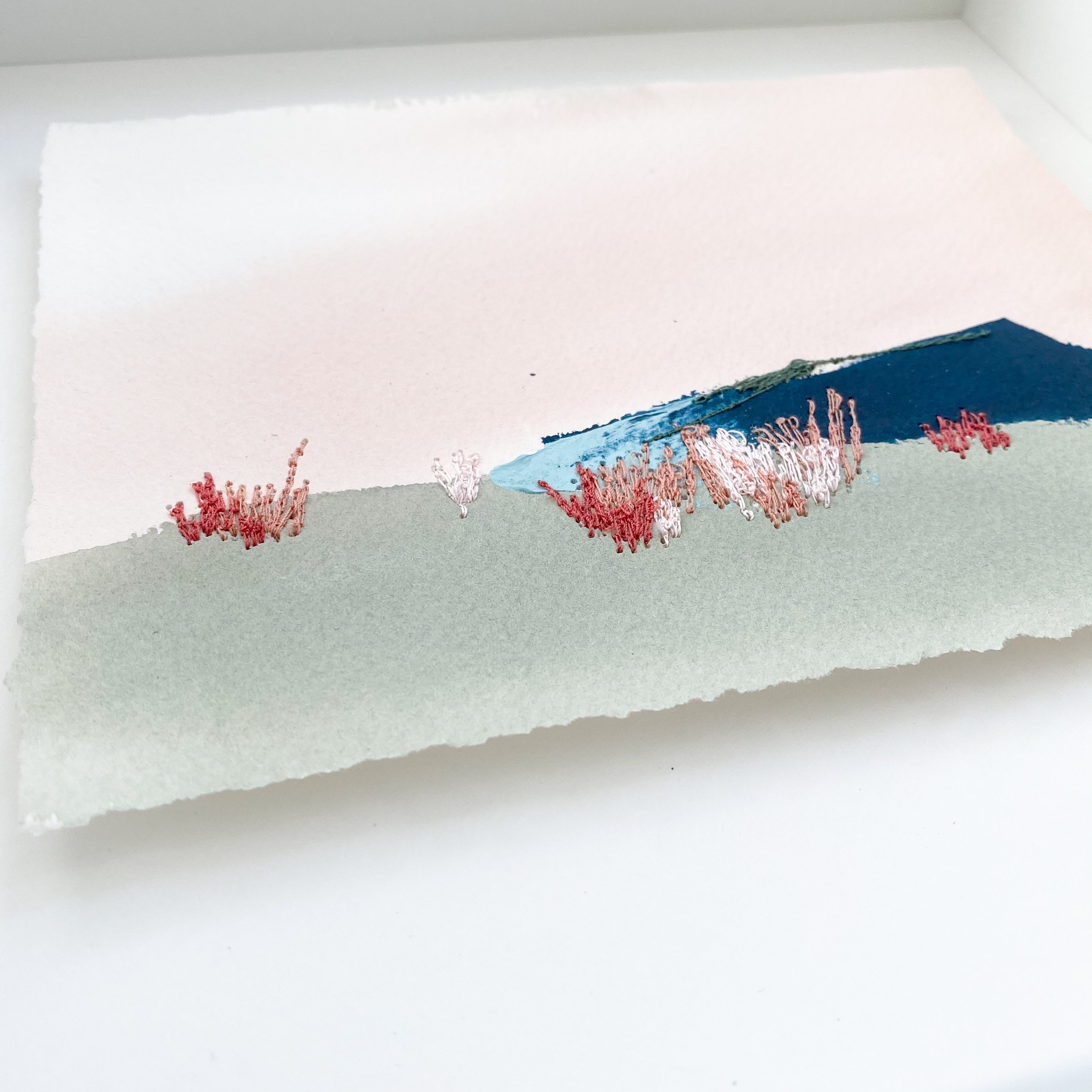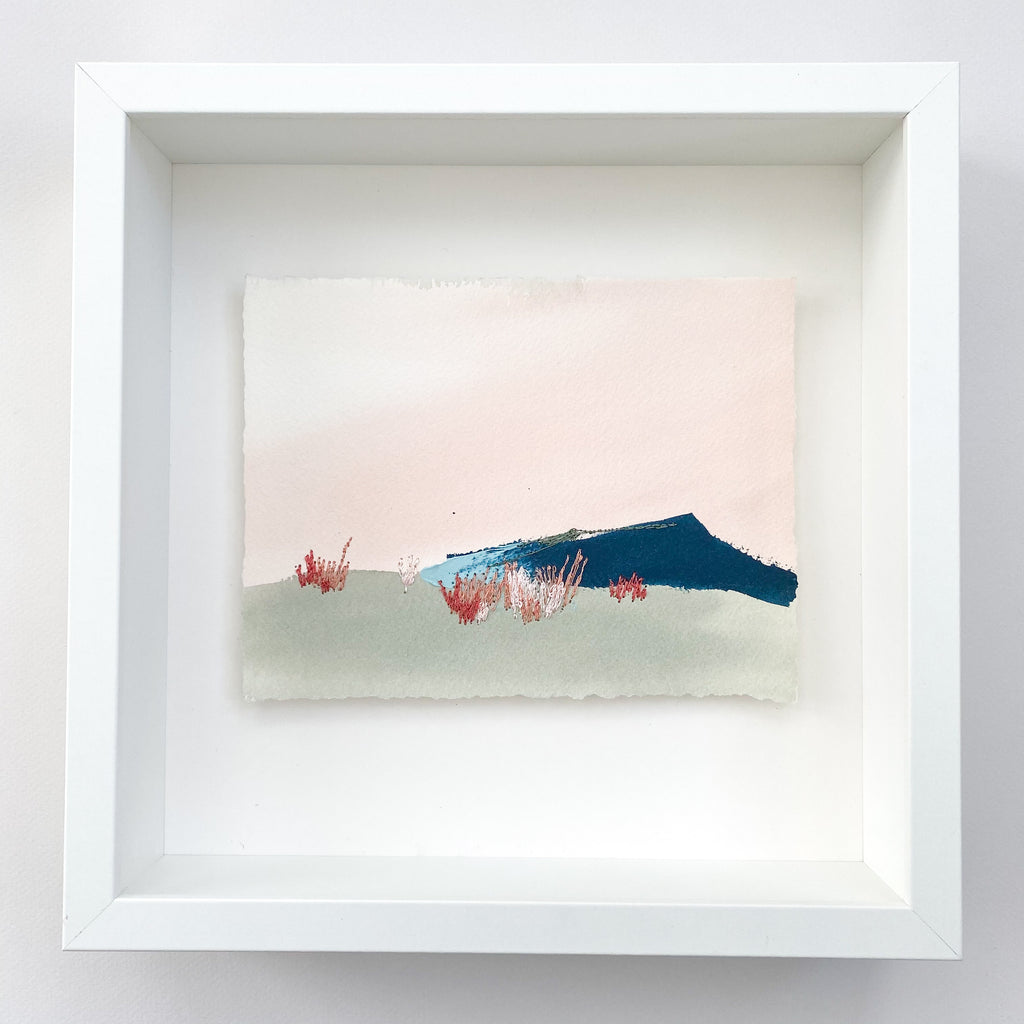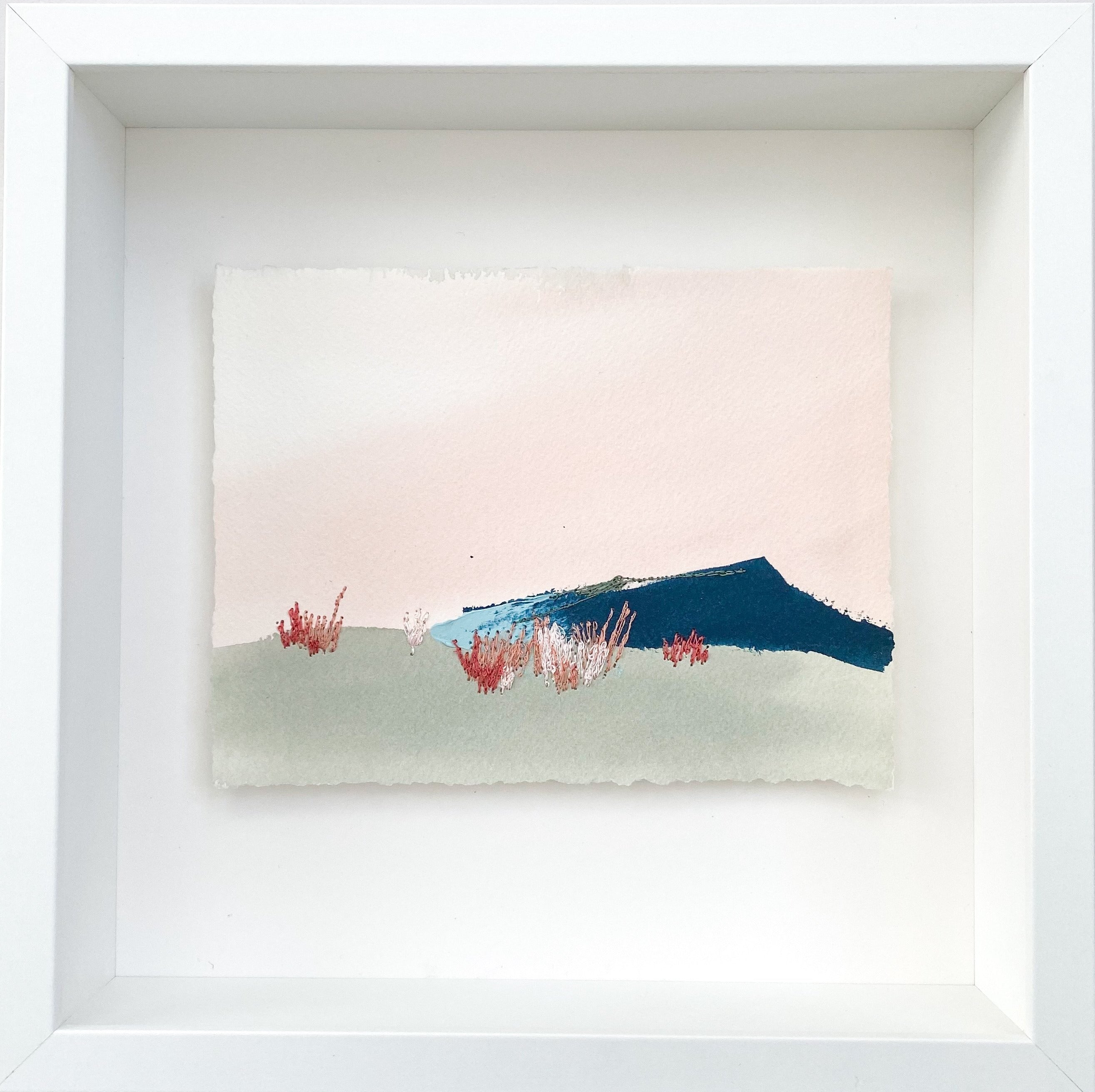 mixed media on paper, in white shadowbox frame