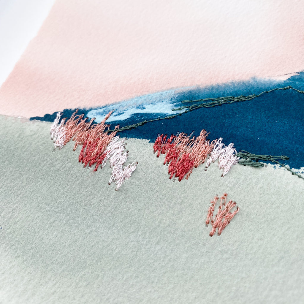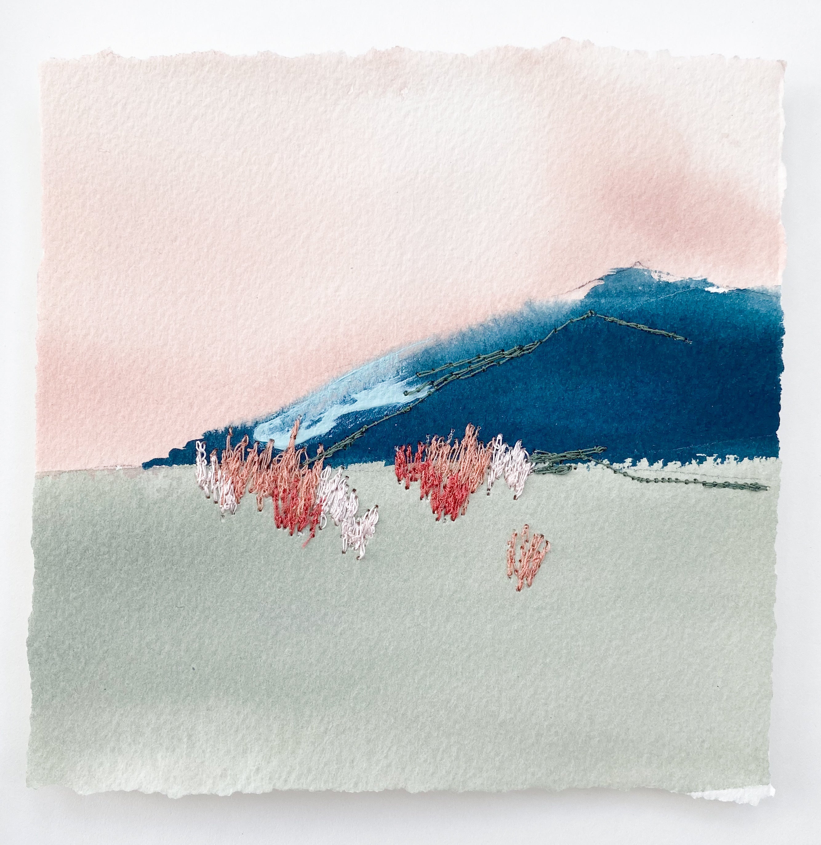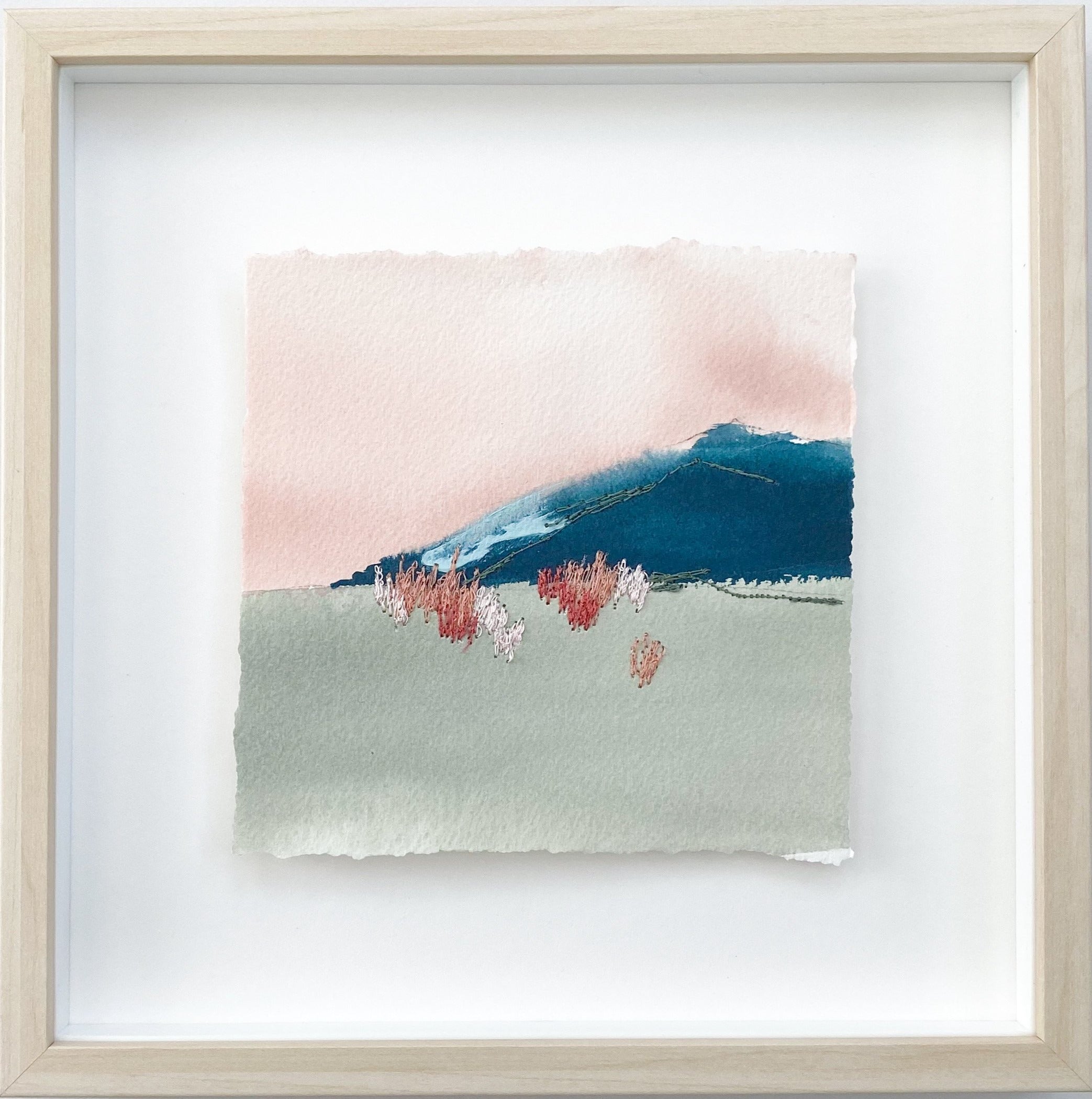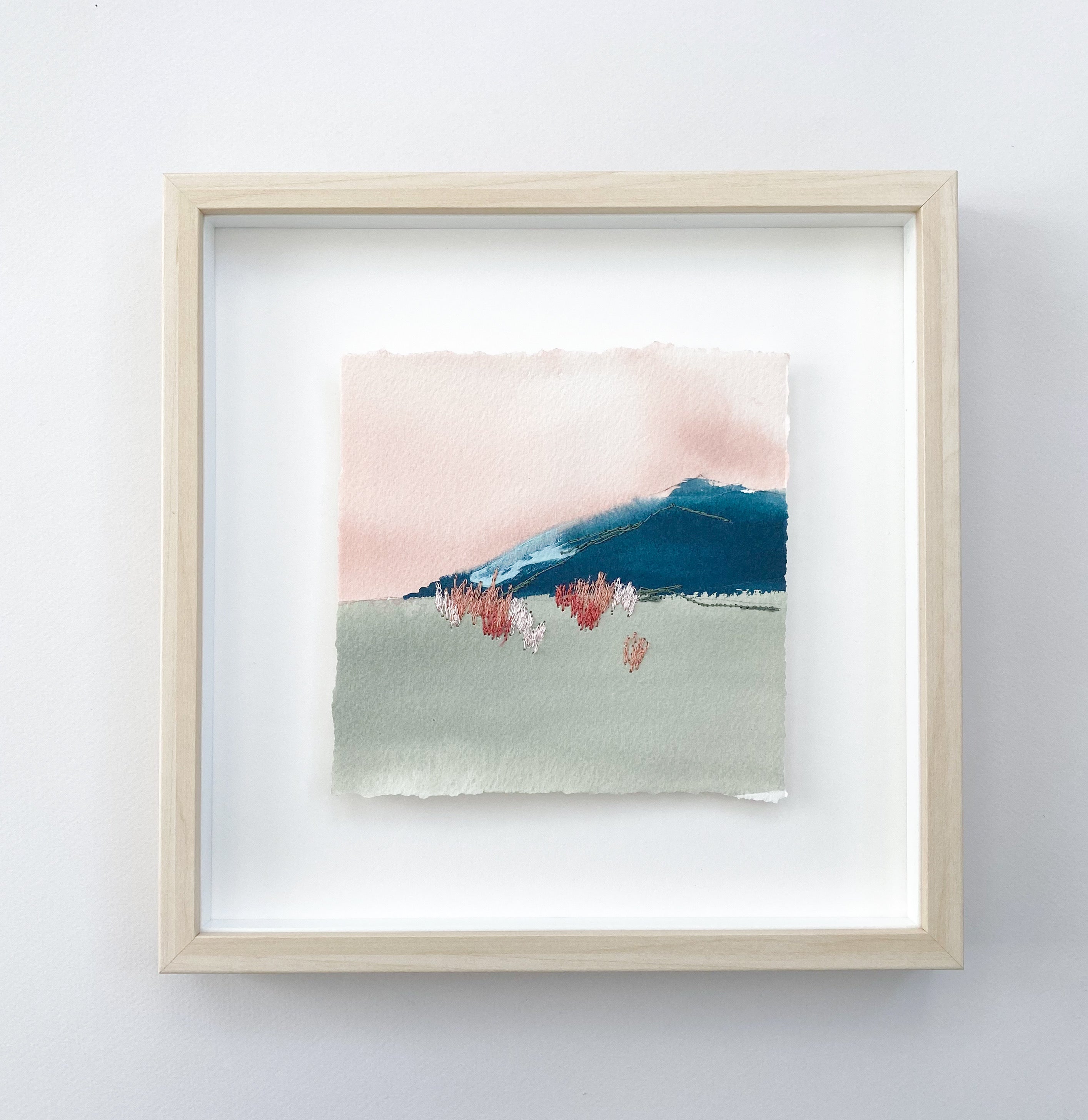 mixed media on paper, in wood shadowbox frame