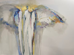 Linda James grew up in Rome, Georgia as the oldest of 5 children. Linda loved to draw from a young age. Her parents always encouraged her artistic endeavors and framed much of her college work to hang in their home. She believes that people are created with the interest, and encouragement takes us onward, which is exactly what her parents did for her. Linda is most known for her ethereal award-winning Angels and has done a number of landscapes over the years - the greens and browns and blues are always layered and lovely. However, for this new body of work, she "wanted another dimension - a twist maybe, so is working in colors unusual for landscapes and lines instead of shapes - all of which is stimulating and thought provoking - and, with the soft pastels they take on an abstraction that feels exciting." Through her work, Linda aims to share God's word in a way that touches others and perhaps awakens a desire to know Him better.