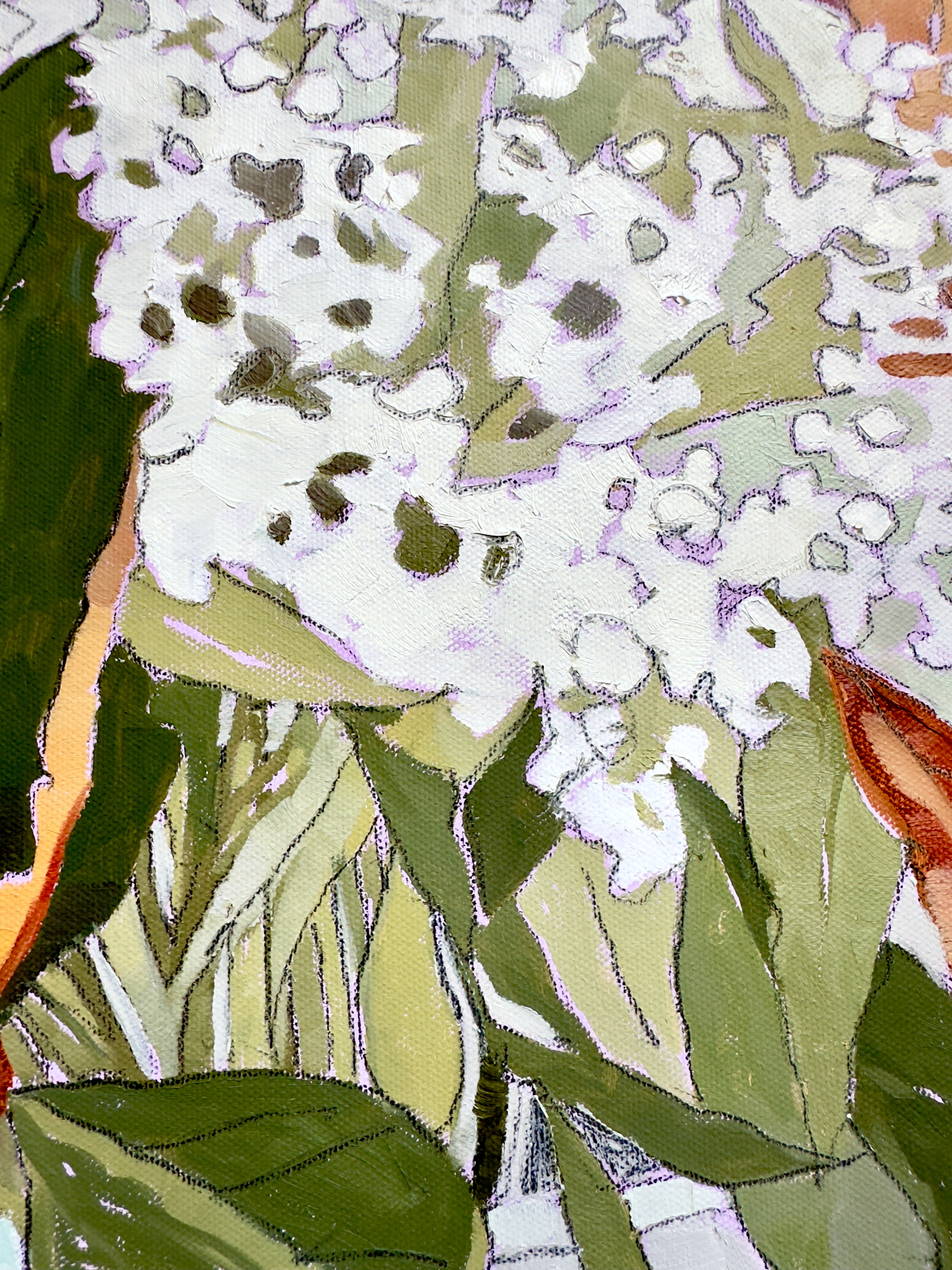 Pamela’s intention as a painter is to speak to the elegance of place and object; to use paint as a means to capture an image and then to reduce the noisy elements in landscape, botanical or interior subjects, by breaking down busy images into an economy of shape and hue. “I love a quiet place. I love to have the brain space to allow my mind and my eyes to soak in the images of my world. In the same manner, the image I want to paint must also speak to my need for simplicity and peace. Our world is a busy, loud and cluttered place. I can paint those elements out, leaving only lovely positive and negative shapes, made with colors that love to be together...” Painter and avid gardener who is fascinated with color, inspired by music, good reads and lessons to learn, Pamela works from her studio with windows that let in the woods of Northeast Georgia, where she lives with her husband Van, dog Tuck and friendly wildlife.