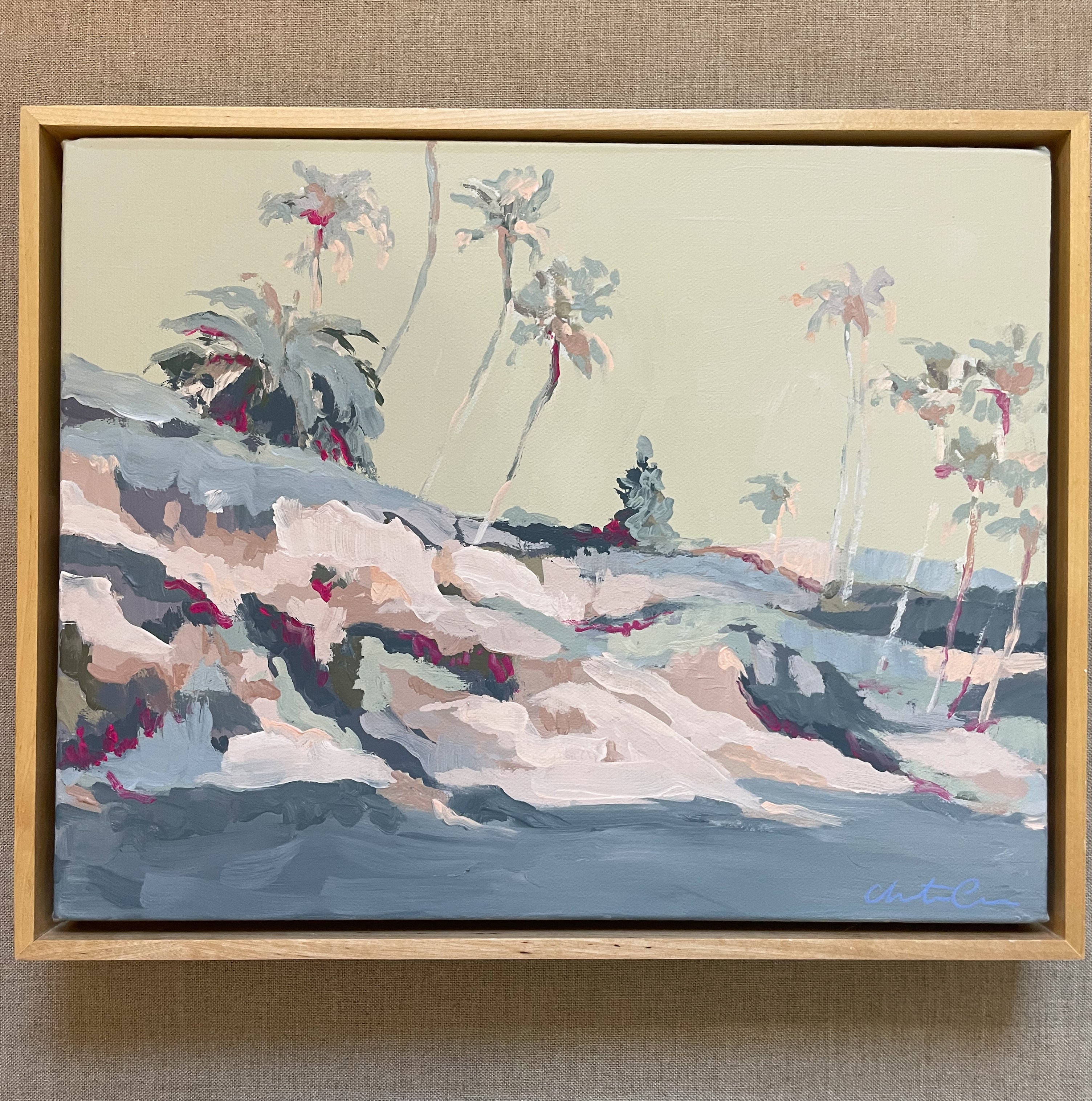 Christine hopes to create artwork that strikes the balance of fun and timeless, in an effortless manner. Composition and color harmony are a distinctive part of her work. Her palettes and subject matter are heavily influenced by her upbringing along the east coast of Florida. She hopes to bring everyday scenes to life through a new perspective and unexpected moments of color. Christine paints entirely from the three primaries (red, yellow + blue) and white. This has helped her gain a strong understanding of color theory.