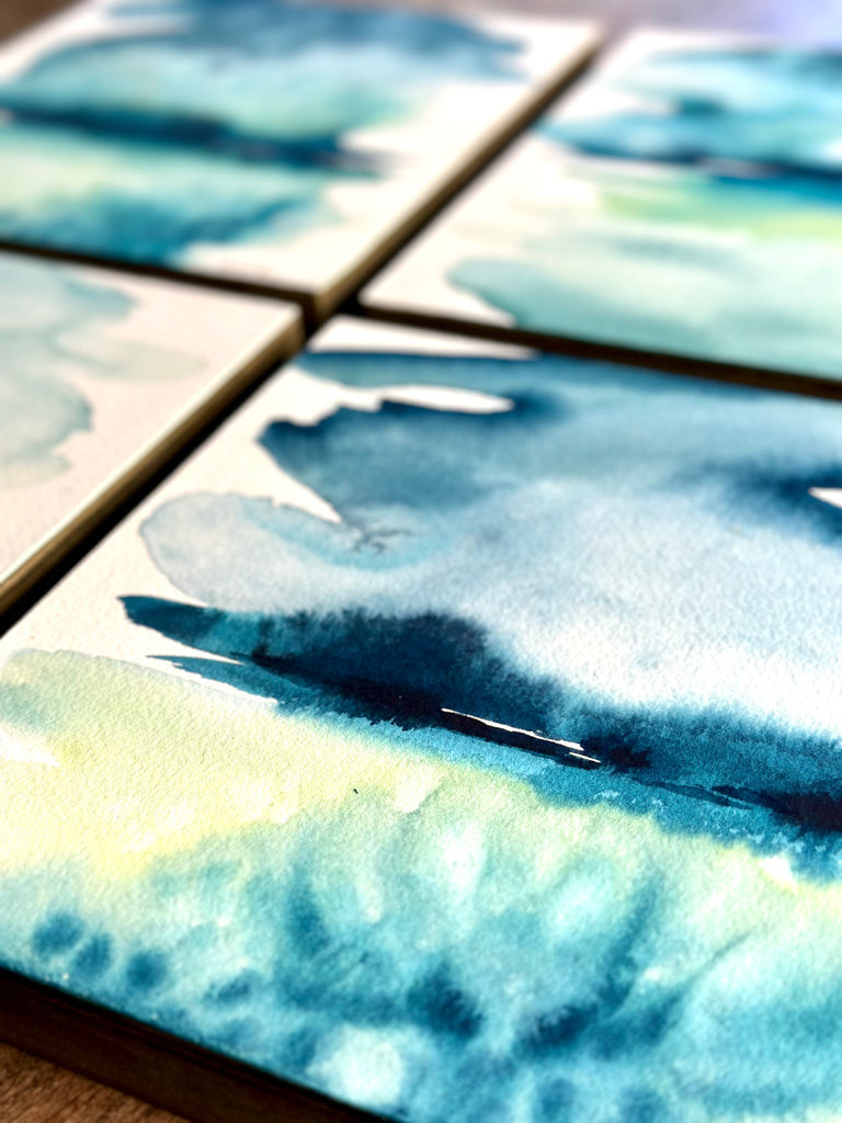 My art is heavily inspired by nature. Each creation takes on its own life, much like nature does when it unfolds. Many of my pieces greet you with a soft, serene atmosphere evoking a peaceful emotion, while others pull you in with the bold colors, telling their own story. I am drawn to the horizon line, the space where land or water meet the sky, a quiet pause at the end of the day as the sun sets, a deep exhale, or a place to root yourself to the earth. It reminds me of how important it is to stay grounded in the world we live in today.​ I received my BFA in Illustration from Washington University in St. Louis. I taught elementary art for many years and have been a professional artist for the past 5 years. In addition to my studio practice, I lead watercolor workshops and retreats. This work allows me to connect with women, teaching them how to use the medium as a tool to ease anxiety. My painting practice is what grounds me daily. I love sharing with others how to set intentions and being mindful with their own creativity.