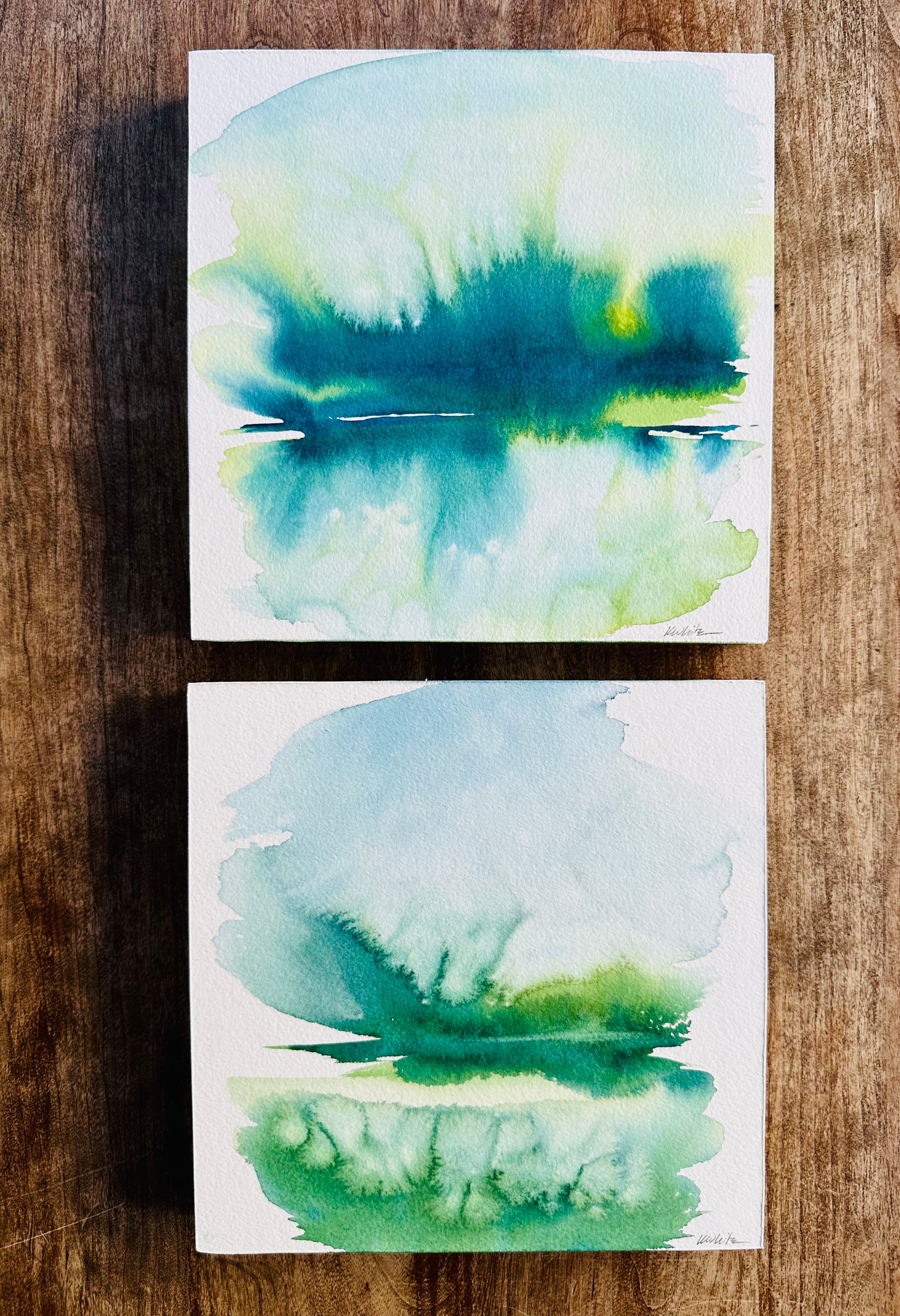 My art is heavily inspired by nature. Each creation takes on its own life, much like nature does when it unfolds. Many of my pieces greet you with a soft, serene atmosphere evoking a peaceful emotion, while others pull you in with the bold colors, telling their own story. I am drawn to the horizon line, the space where land or water meet the sky, a quiet pause at the end of the day as the sun sets, a deep exhale, or a place to root yourself to the earth. It reminds me of how important it is to stay grounded in the world we live in today.​ I received my BFA in Illustration from Washington University in St. Louis. I taught elementary art for many years and have been a professional artist for the past 5 years. In addition to my studio practice, I lead watercolor workshops and retreats. This work allows me to connect with women, teaching them how to use the medium as a tool to ease anxiety. My painting practice is what grounds me daily. I love sharing with others how to set intentions and being mindful with their own creativity.