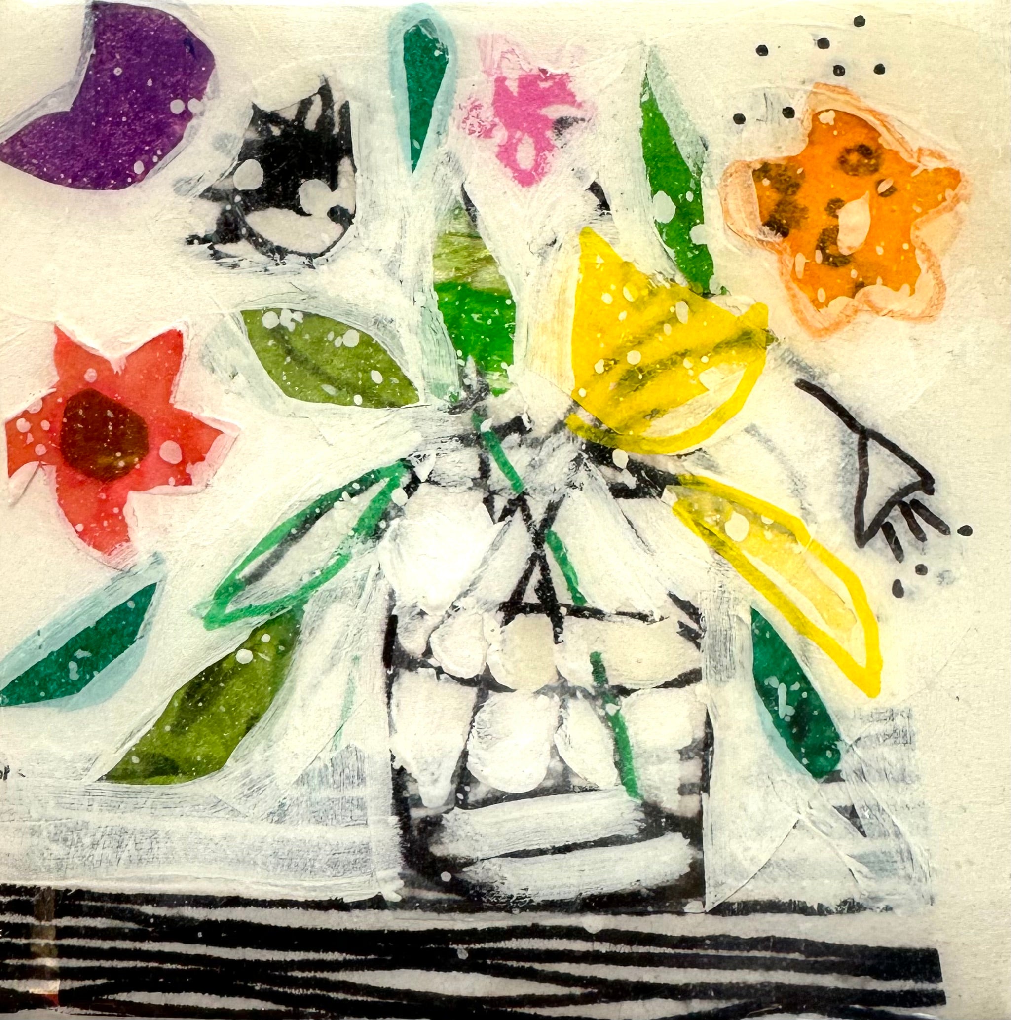 acrylic and mixed media on cradled wood panel