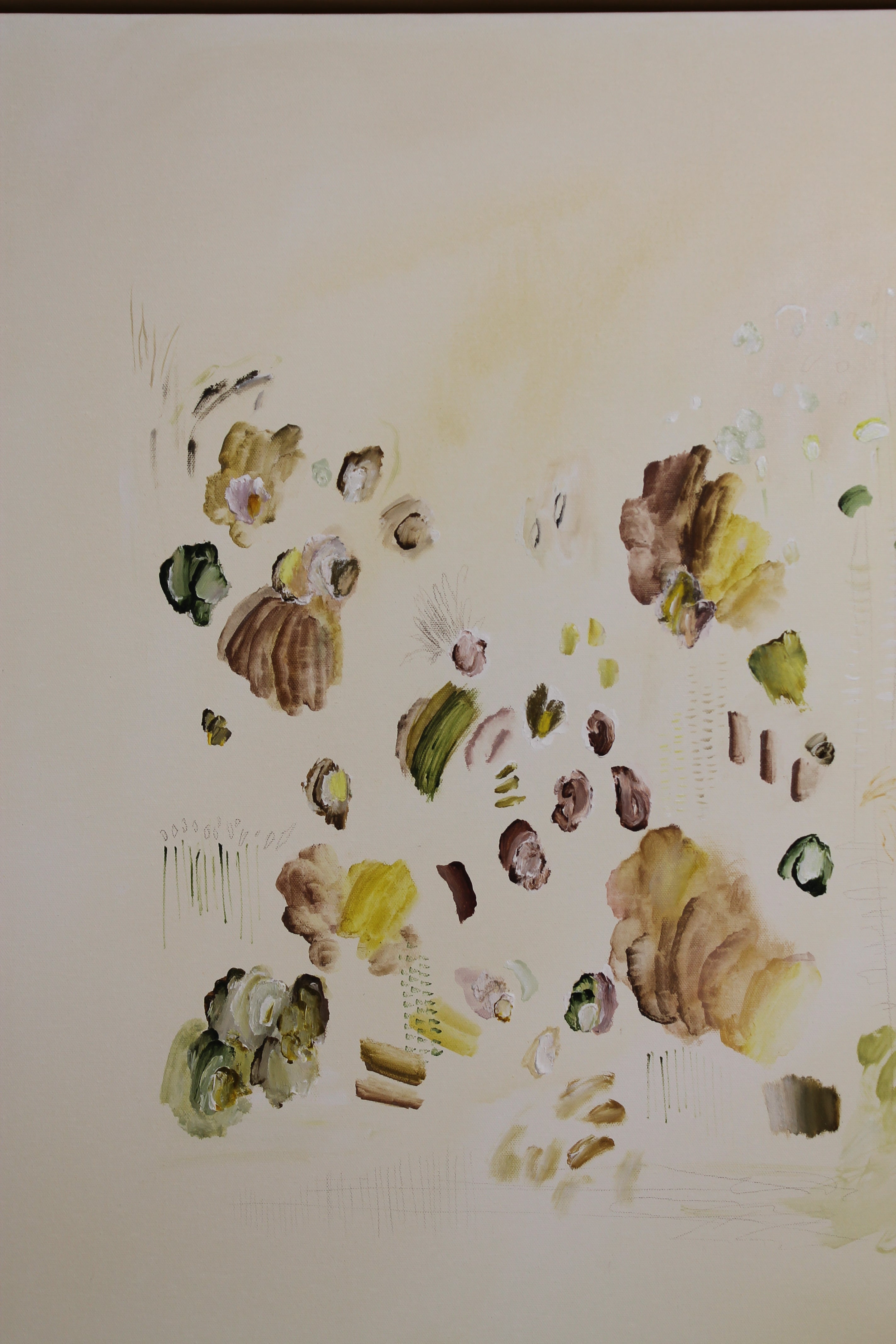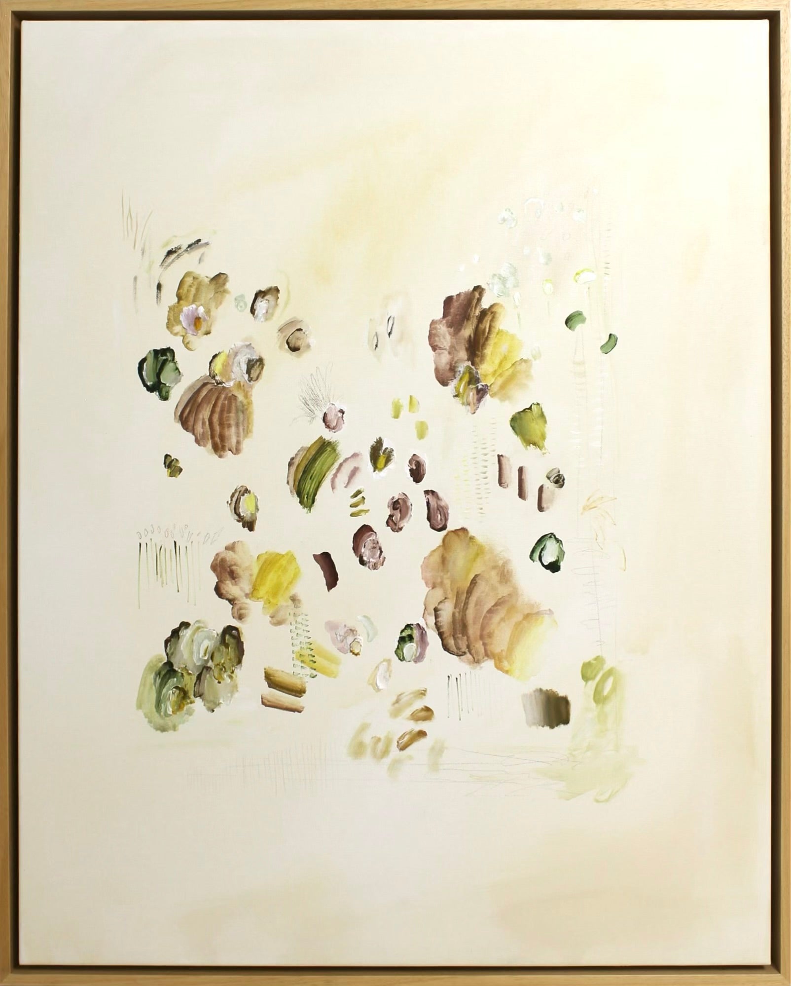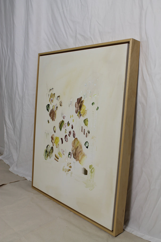 acrylic and pastel on gallery wrapped canvas, in wood floater frame