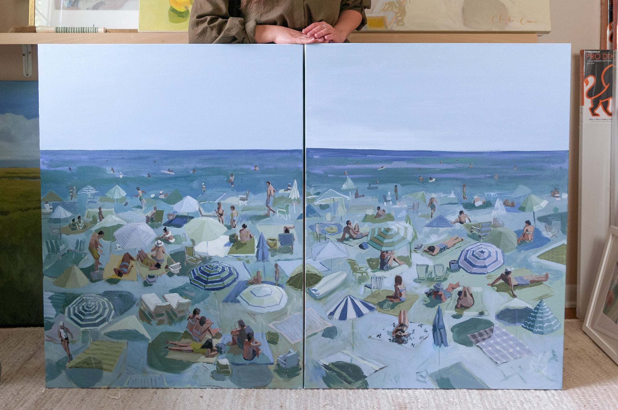 Christine hopes to create artwork that strikes the balance of fun and timeless, in an effortless manner. Composition and color harmony are a distinctive part of her work. Her palettes and subject matter are heavily influenced by her upbringing along the east coast of Florida. She hopes to bring everyday scenes to life through a new perspective and unexpected moments of color. Christine paints entirely from the three primaries (red, yellow + blue) and white. This has helped her gain a strong understanding of color theory.