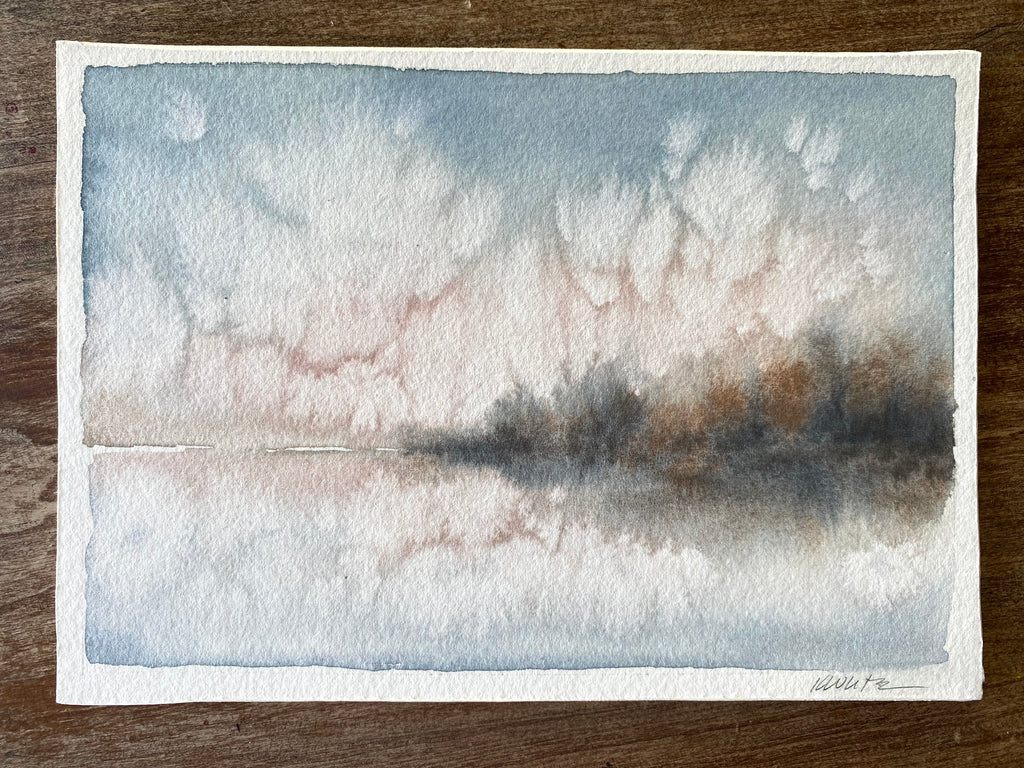 My art is heavily inspired by nature. Each creation takes on its own life, much like nature does when it unfolds. Many of my pieces greet you with a soft, serene atmosphere evoking a peaceful emotion, while others pull you in with the bold colors, telling their own story. I am drawn to the horizon line, the space where land or water meet the sky, a quiet pause at the end of the day as the sun sets, a deep exhale, or a place to root yourself to the earth. It reminds me of how important it is to stay grounded in the world we live in today.​ I received my BFA in Illustration from Washington University in St. Louis. I taught elementary art for many years and have been a professional artist for the past 5 years. In addition to my studio practice, I lead watercolor workshops and retreats. This work allows me to connect with women, teaching them how to use the medium as a tool to ease anxiety. My painting practice is what grounds me daily. I love sharing with others how to set intentions and being mindful with their own creativity.