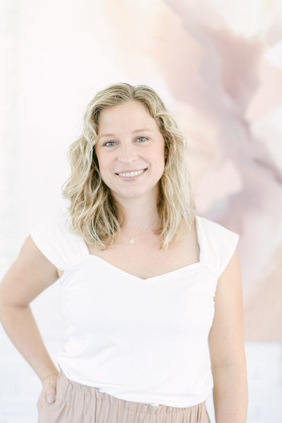 Deeann has a BFA from Memphis College of Art with a painting emphasis and has always been drawn to mixed media and collage. She took several fiber arts classes in college where she learned machine embroidery and sewing techniques. When she began working abstract a few years later, she combined these two techniques and found her own creative voice. She uses a sewing technique called free-motion machine embroidery on top of painted papers and incorporates those papers as collage.The stitched lines sit on top of fluid ink washes, colliding with bold paint scrapes and embellishing each piece with texture and delicate line, like veins running through the painting. “I am drawn to the tactility that the embroidery adds to the work both aesthetically and conceptually. The nature of thread is strong but intricate; it has a sort of permanence with the appearance of fragility.” Deeann has been in Nashville since 2018 and paints full time in her home studio with her two young daughters nearby.