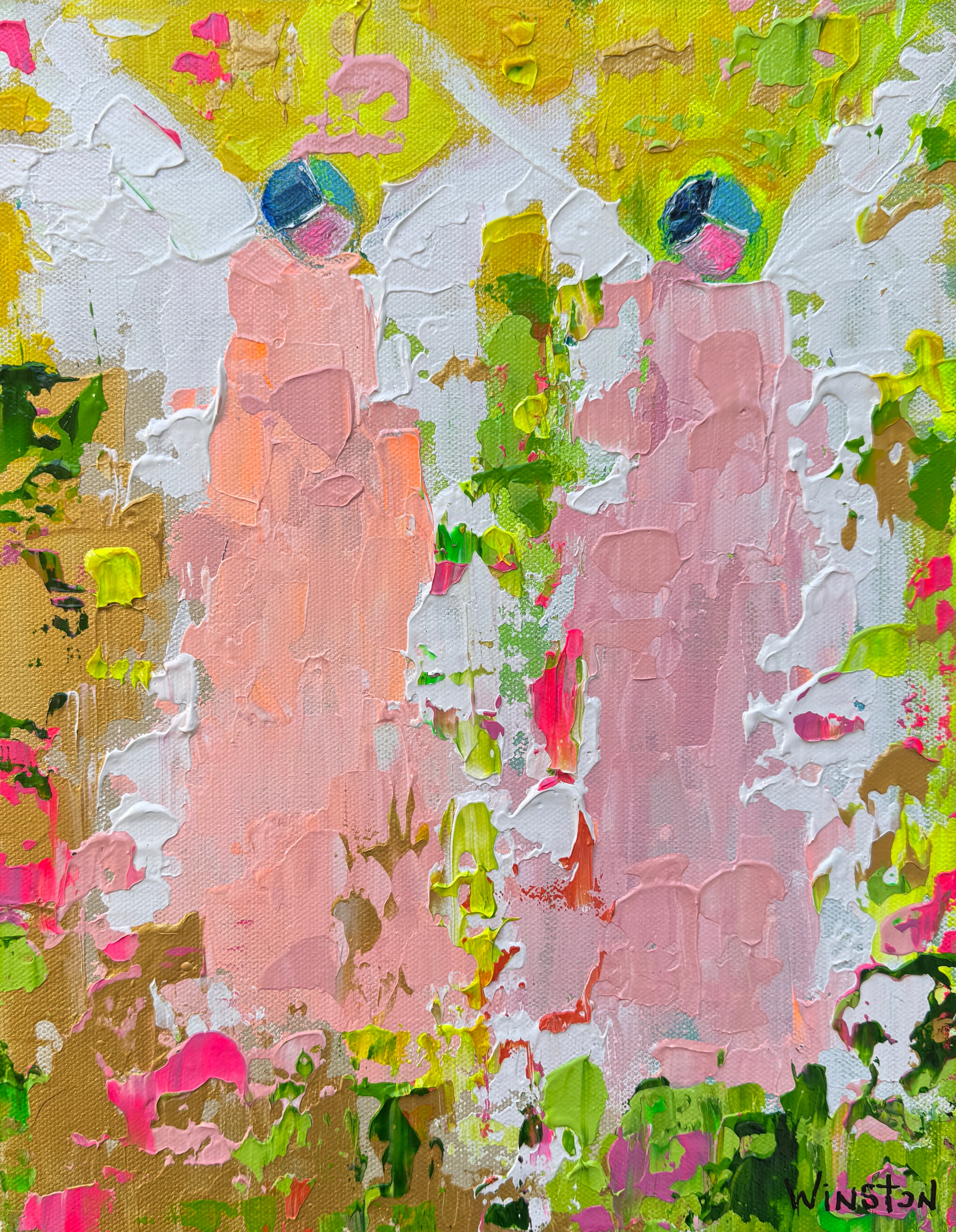 Winston Wiant is originally from Amelia Island, Florida, and full of southern charm. She brings her whimsical and witty delight to each and every painting. Having painted since childhood, she received a Bachelor of Arts degree in Studio Art at Brenau University and has been pursuing her love of art ever since. Her paintings are full of texture, using the palette knife and free brushstrokes to layer the paint, creating one energetic piece after another. She lives in Athens, GA, with her husband and two daughters and paints in her home studio. “Art to me is a form of self-expression. The way I feel that day reflects in my work. My love of bold color and texture is both distinctive and captivating.”