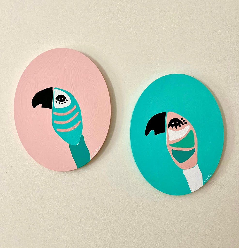 Totally tropical Lisa Kaw shares her love for nature and travel through her vibrant paintings. From her South Florida jungalow, she uses acrylic on canvas to transform the beauty around her into tangible one of a kind treasures. A minimalist at heart, Lisa thrives best when surrounded only by the blues and greens of the natural world and the curious melody of the rainforest chatter. Bali and the Big Island of Hawaii are her most sacred visited places. With a playful palette and a joyful spirit, Lisa Kaw creates work that simply and purely communicates the wonder of our natural world.