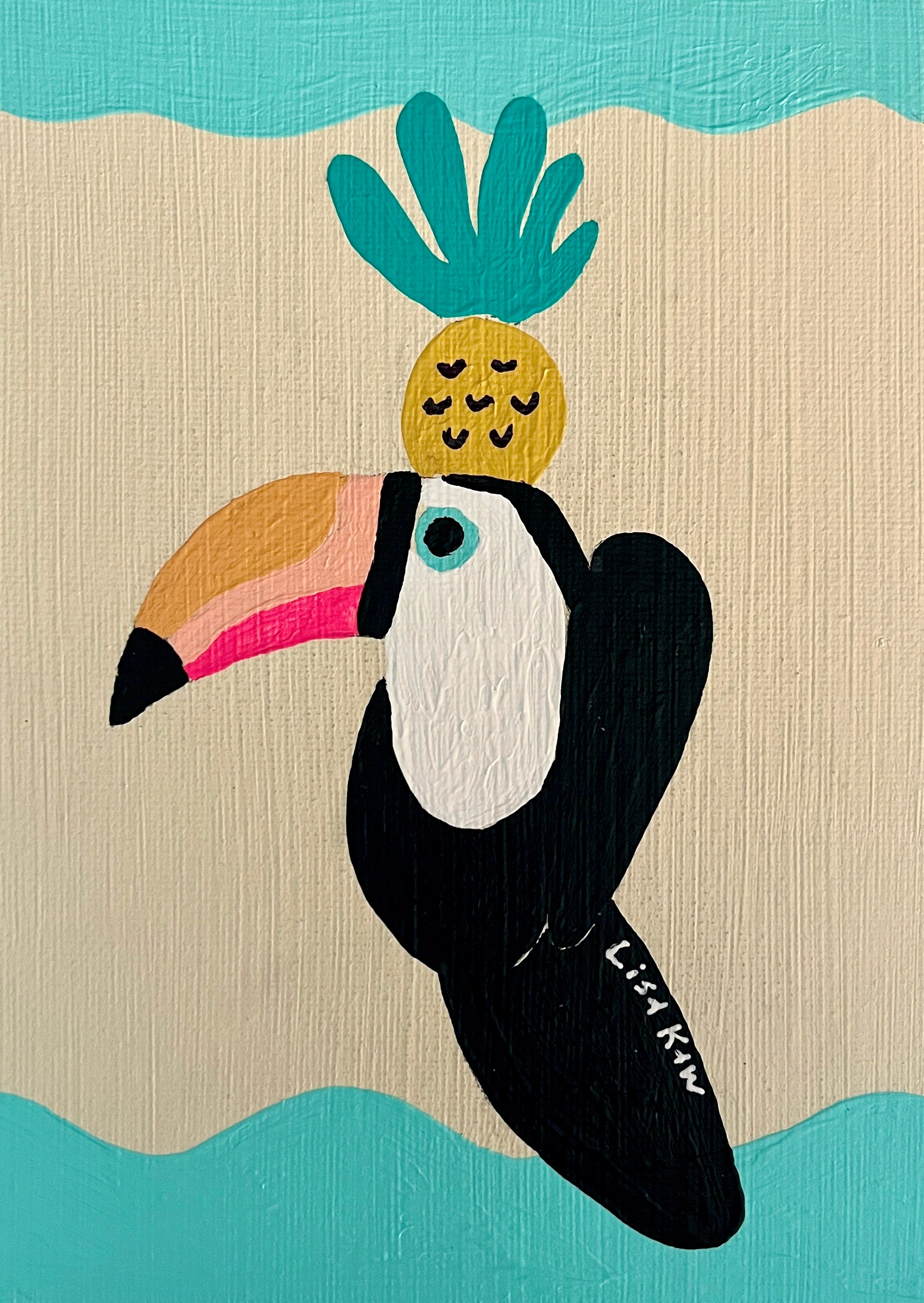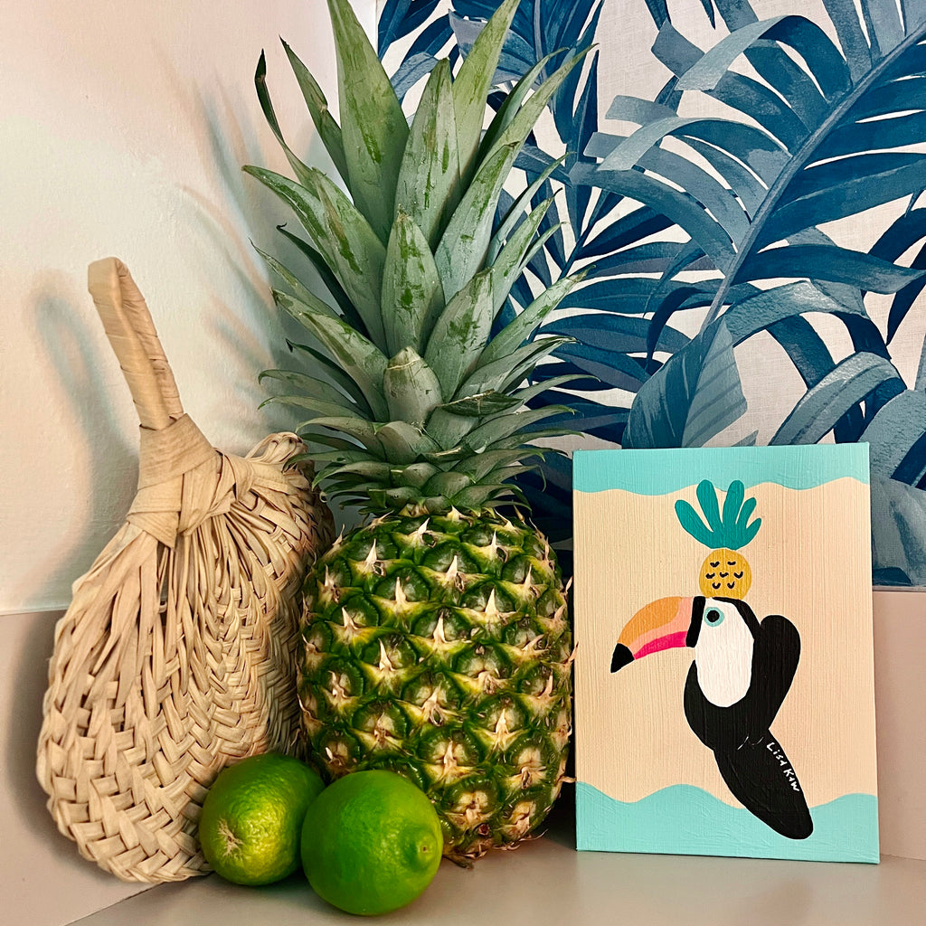 Totally tropical Lisa Kaw shares her love for nature and travel through her vibrant paintings. From her South Florida jungalow, she uses acrylic on canvas to transform the beauty around her into tangible one of a kind treasures. A minimalist at heart, Lisa thrives best when surrounded only by the blues and greens of the natural world and the curious melody of the rainforest chatter. Bali and the Big Island of Hawaii are her most sacred visited places. With a playful palette and a joyful spirit, Lisa Kaw creates work that simply and purely communicates the wonder of our natural world.