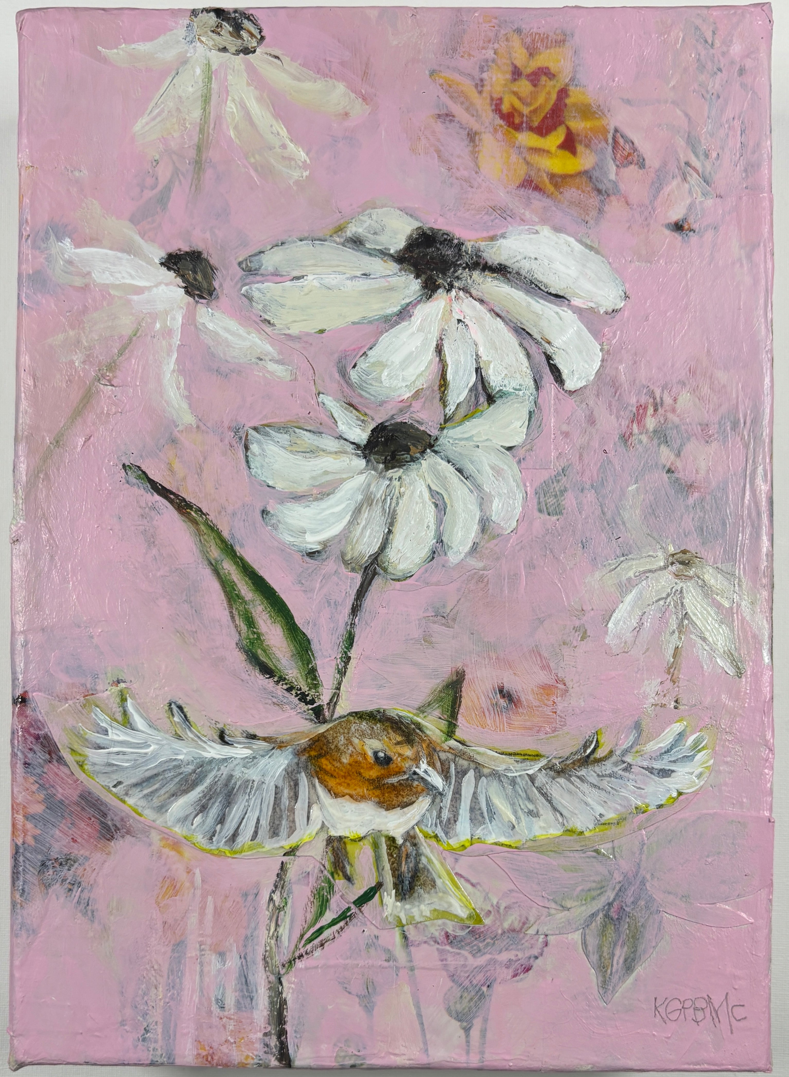A lifelong artist, I make art because coming up with an idea is what gets me out of bed in the morning and into my studio, mercifully located in my home. So much of what I love in life is at home- my pets inside and wildlife out, nature pouring through the windows, comfortably cluttered rooms full of books and art, the forest surrounding me. My art originates with that early morning idea, a daily walk in the woods, the imagery around me. The deep connection to my surroundings is reflected in the art I make, even using pages of books in my art and the book itself as the canvas with the animals love as the subject. Animal and landscape renderings in mixed media, storytelling dioramas and large works on canvas all have a similar feel of natural wonder.