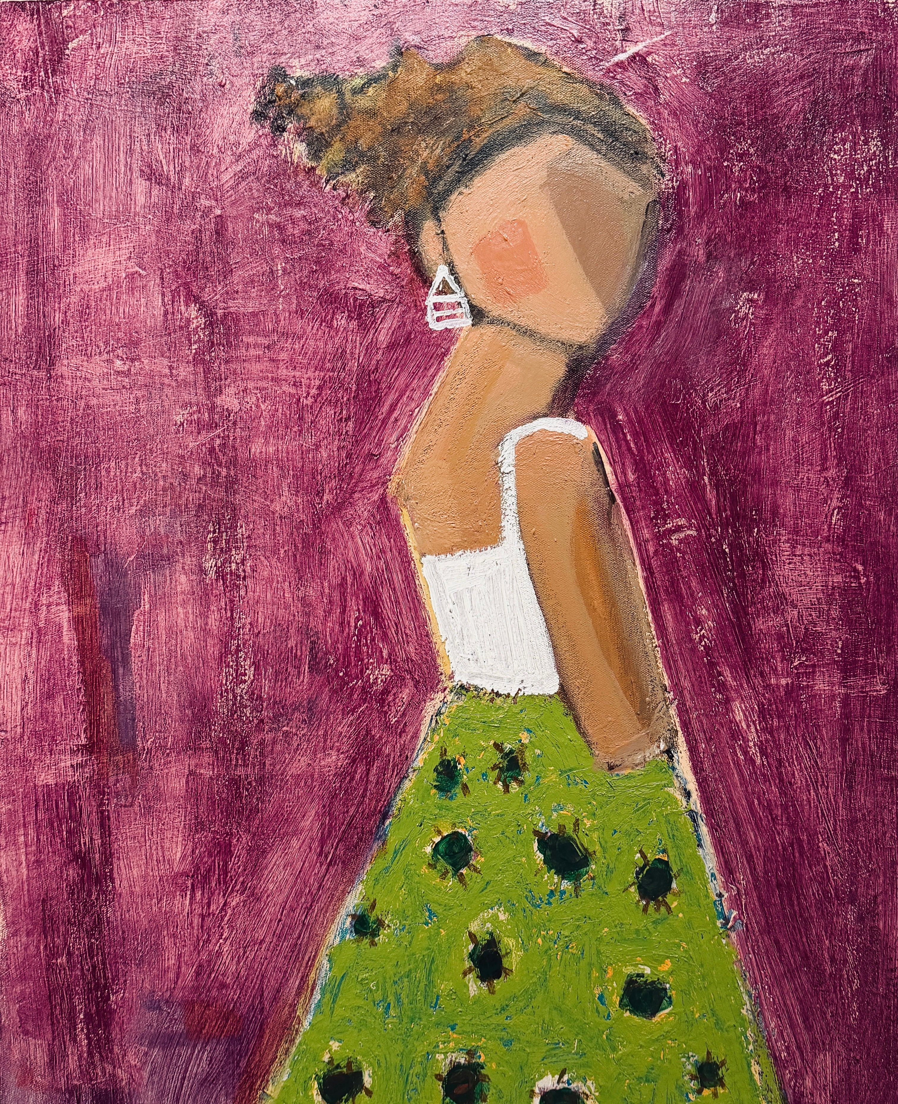 Page Morris picked up a paintbrush in third grade and never looked back. Largely self-taught, her client list reaches as far as Canada and includes syndicated columnist Kathleen Parker. Galleries representing her work include: Verve and Over the Mantle in Columbia, SC; Grand Bohemian Gallery in Charleston, SC and One Kings Lane. "My subject matter is women who are feminine, colorful, playful, strong, and beautiful. I use paper, pencil, markers, oil sticks, and paint to achieve a multi-dimensional look. I love texture because the viewers see even more when they stop to take a second look. I adhere to a rigid schedule of painting each day. Creativity only happens if I'm hard at work in my studio. I love what I do and hope my viewers can see that. It's a joyous experience to pick up a paintbrush. It's what I do and what I am."