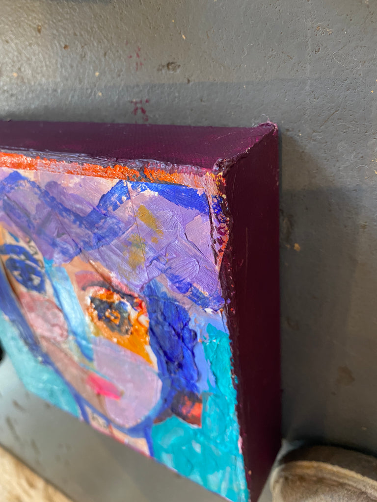 Purple hair, turquoise background