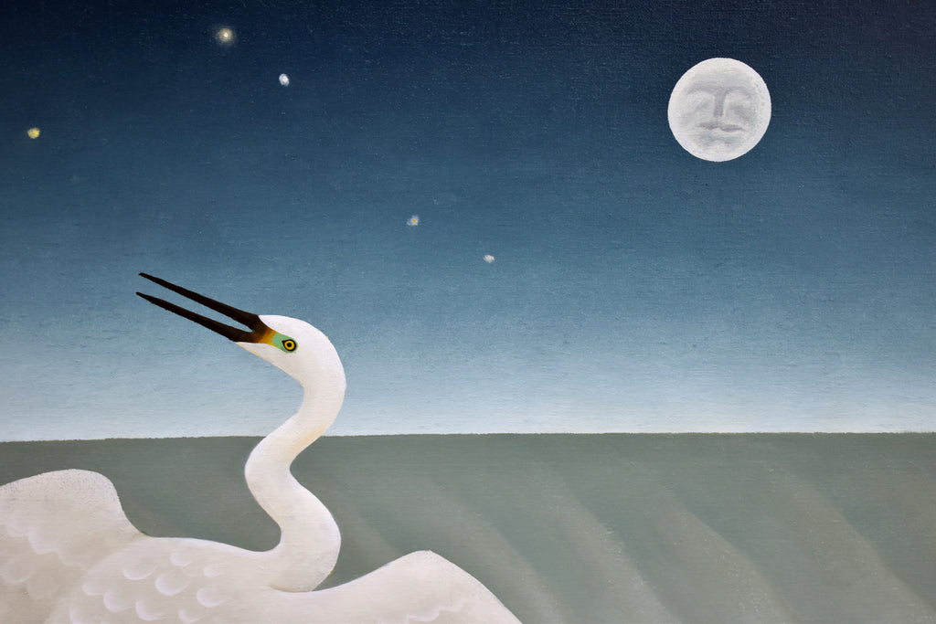 Quiet nocturne, egret with head turned