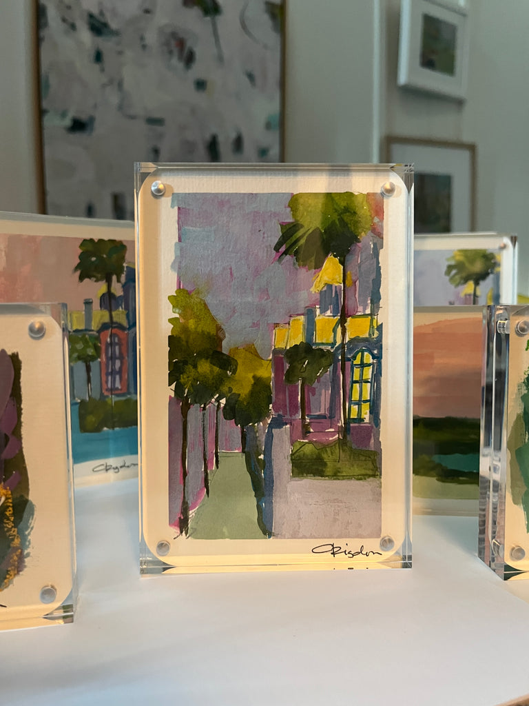 gouache on paper, in acrylic frame