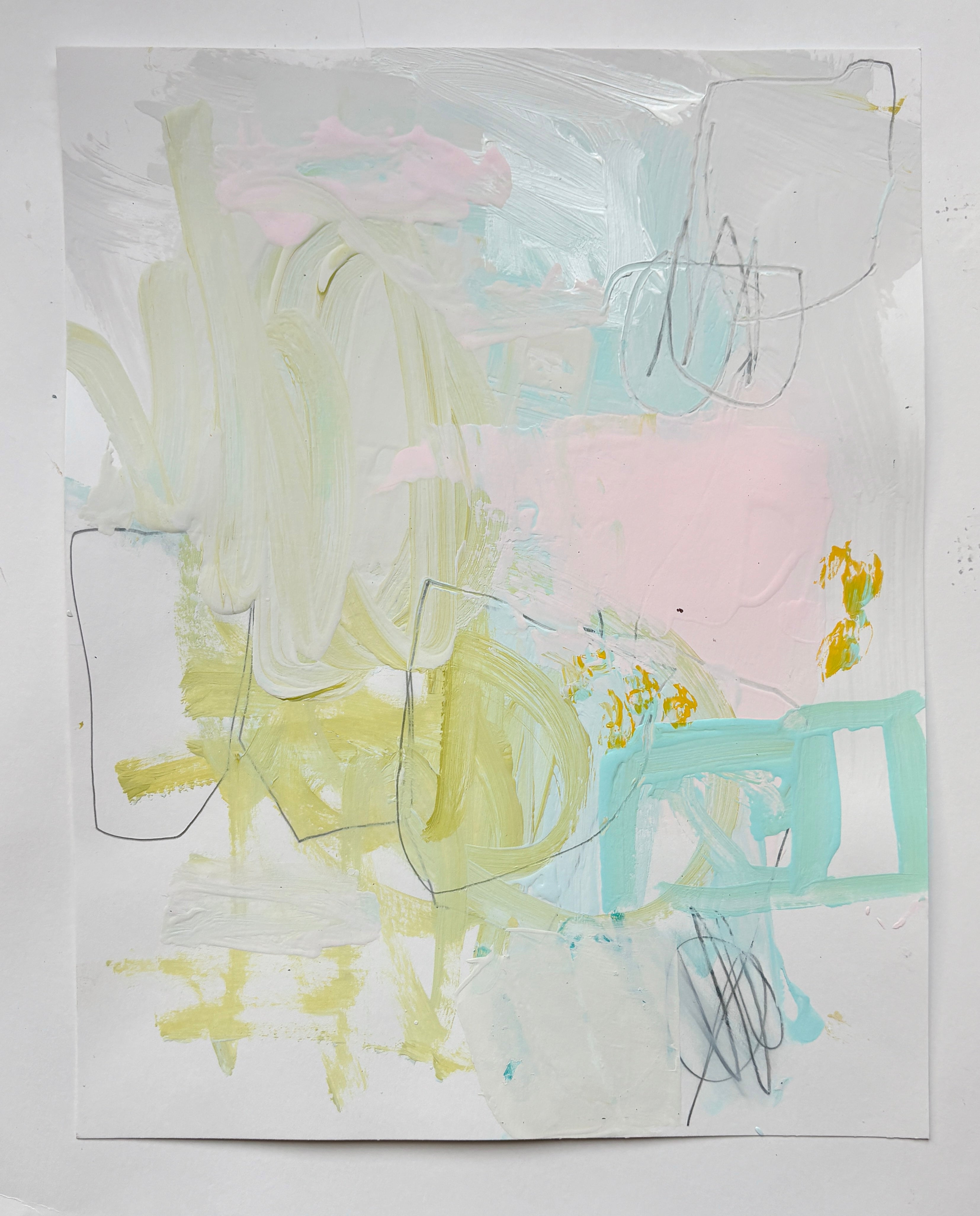 Sarah Trundle is a Charlottesville, Va. painter working primarily in abstraction. Decisive mark-marking, bold, geometric shapes, and a simplicity of form, line, and color, are the hallmarks of Sarah's paintings. She sees every painting as a constantly evolving and shifting process, often starting a piece without any fixed vision of an end product. Her approach is one of constantly obscuring and re-defining, of ongoing layering, scraping, covering, wiping, scratching, and generally moving paint and materials around to ultimately achieve the final balance of shape and color that gives her that "aha" moment.