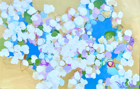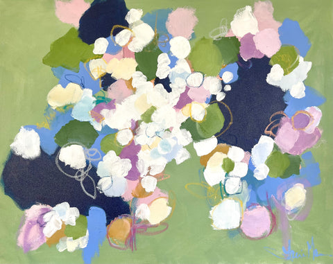 Art has been a part of my life from the very beginning. I was raised in North Carolina where my mother, an artist and art teacher, filled my childhood with projects and books and conversations about color and composition. Later, I took studio classes, studied art history and lived abroad in Florence, Italy where my passion for painting became clear. I am inspired daily by aesthetic beauty around me, which inspires my colors and compositions that are clean, fresh and balanced. My goal is for the aesthetic beauty of my art to evoke an emotional response that brings joy, lifts the spirit and reminds one of goodness and beauty within the soul. I believe one can find solace from the imperfections and messiness of life through the beauty of art. My preferred mediums are acrylic and oil pastels and I use canvases of all sizes to explore color and energy in abstract pieces, as well in my figurative pieces. Lanie has worked as a professional artist for 10 years and lives in Washington, DC with her husband, twin sons, daughter and two dogs.