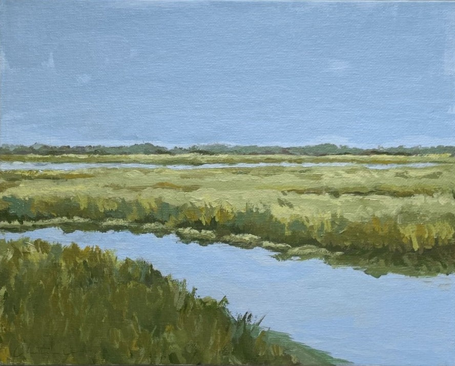 Christine hopes to create artwork that strikes the balance of fun and timeless, in an effortless manner. Composition and color harmony are a distinctive part of her work. Her palettes and subject matter are heavily influenced by her upbringing along the east coast of Florida. She hopes to bring everyday scenes to life through a new perspective and unexpected moments of color. Christine paints entirely from the three primaries (red, yellow + blue) and white. This has helped her gain a strong understanding of color theory.