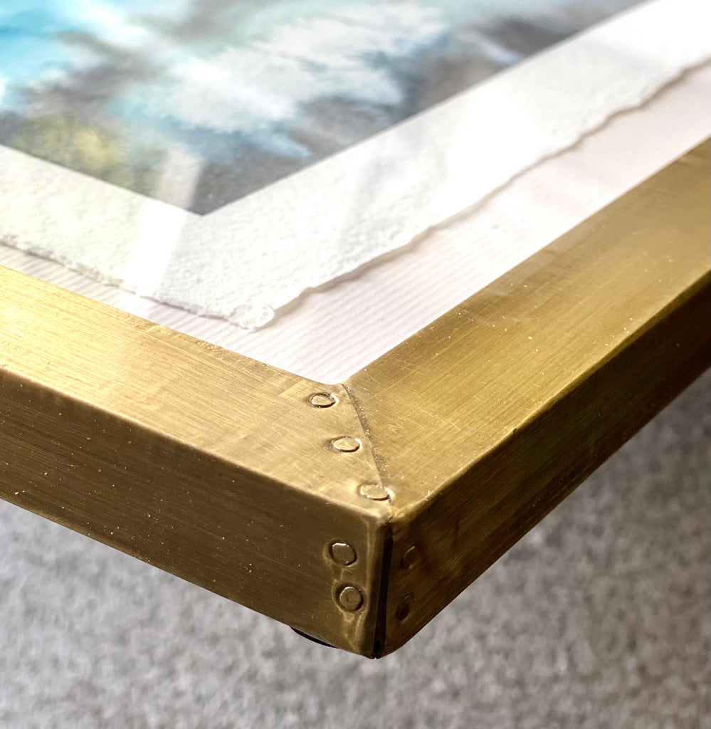 watercolor on deckled edge paper, floating on white mat in gold frame
