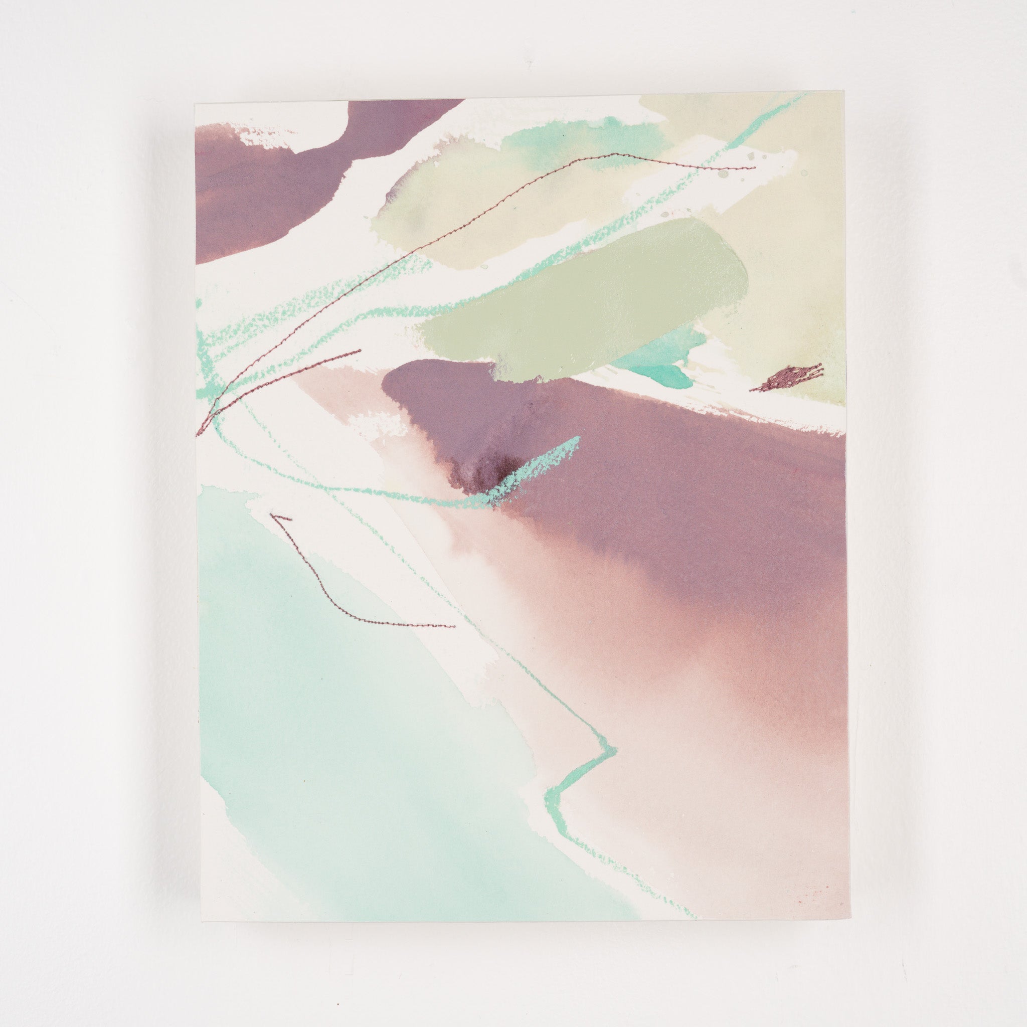 Deeann has a BFA from Memphis College of Art with a painting emphasis and has always been drawn to mixed media and collage. She took several fiber arts classes in college where she learned machine embroidery and sewing techniques. When she began working abstract a few years later, she combined these two techniques and found her own creative voice. She uses a sewing technique called free-motion machine embroidery on top of painted papers and incorporates those papers as collage.The stitched lines sit on top of fluid ink washes, colliding with bold paint scrapes and embellishing each piece with texture and delicate line, like veins running through the painting. “I am drawn to the tactility that the embroidery adds to the work both aesthetically and conceptually. The nature of thread is strong but intricate; it has a sort of permanence with the appearance of fragility.” Deeann has been in Nashville since 2018 and paints full time in her home studio with her two young daughters nearby.