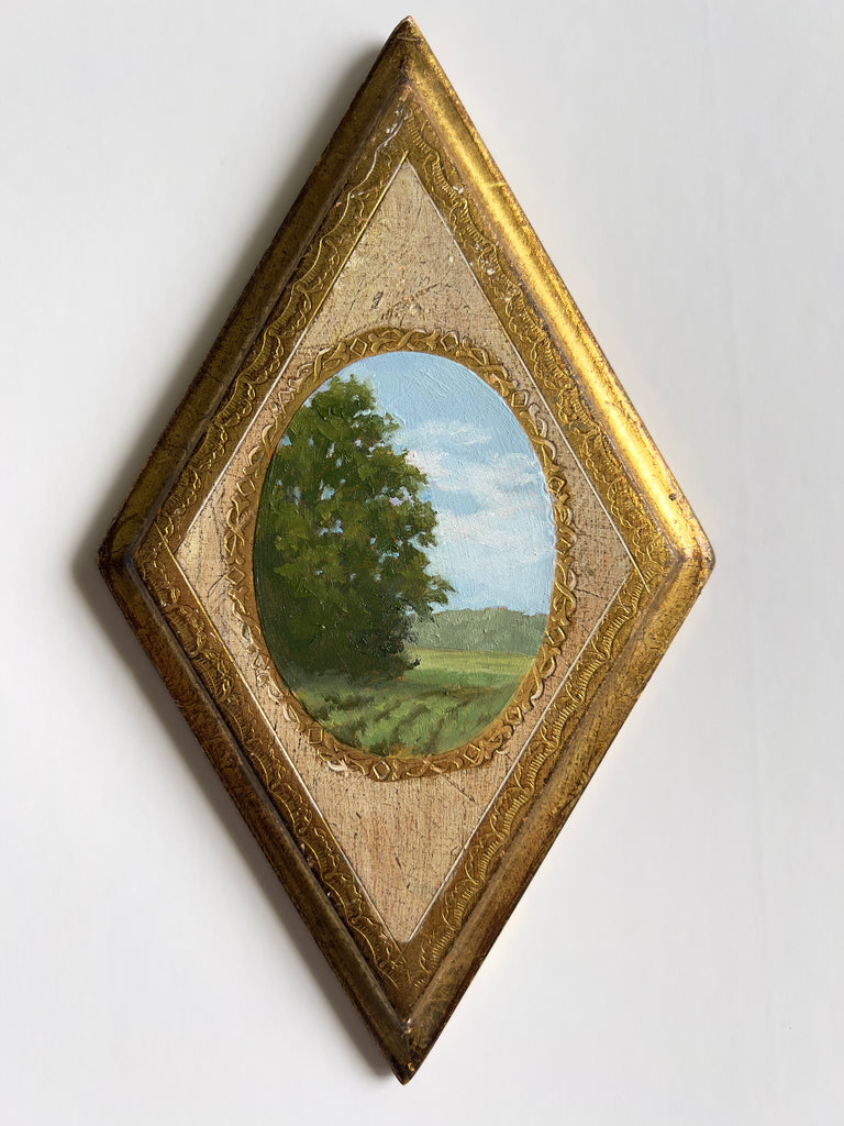 Jennifer was born in Jackson MS and moved to Nashville as a child. She enjoyed art as a child and painted with oils a bit as a teen, but ultimately went to MTSU to earn a degree in nutrition. Jennifer didn’t truly begin painting again until her children were in school full time, and started simply by painting pieces she wanted to hang in her own home. Discovering a love for vintage and antique frames (not to mention looking for these frames both in-person and online), she began pairing them with her favorite paintings. She paints primarily in acrylics on handmade paper. “I love the juxtaposition of a vintage/antique frame with the freshness of a modern landscape on textured handmade paper; the marriage of that tradition and history combined with the fresh clean colors in my pieces brings me joy.” She finds inspiration in clouds and trees and the hunt for the perfect vintage frame. Jennifer lives in Nashville with her husband and two boys.