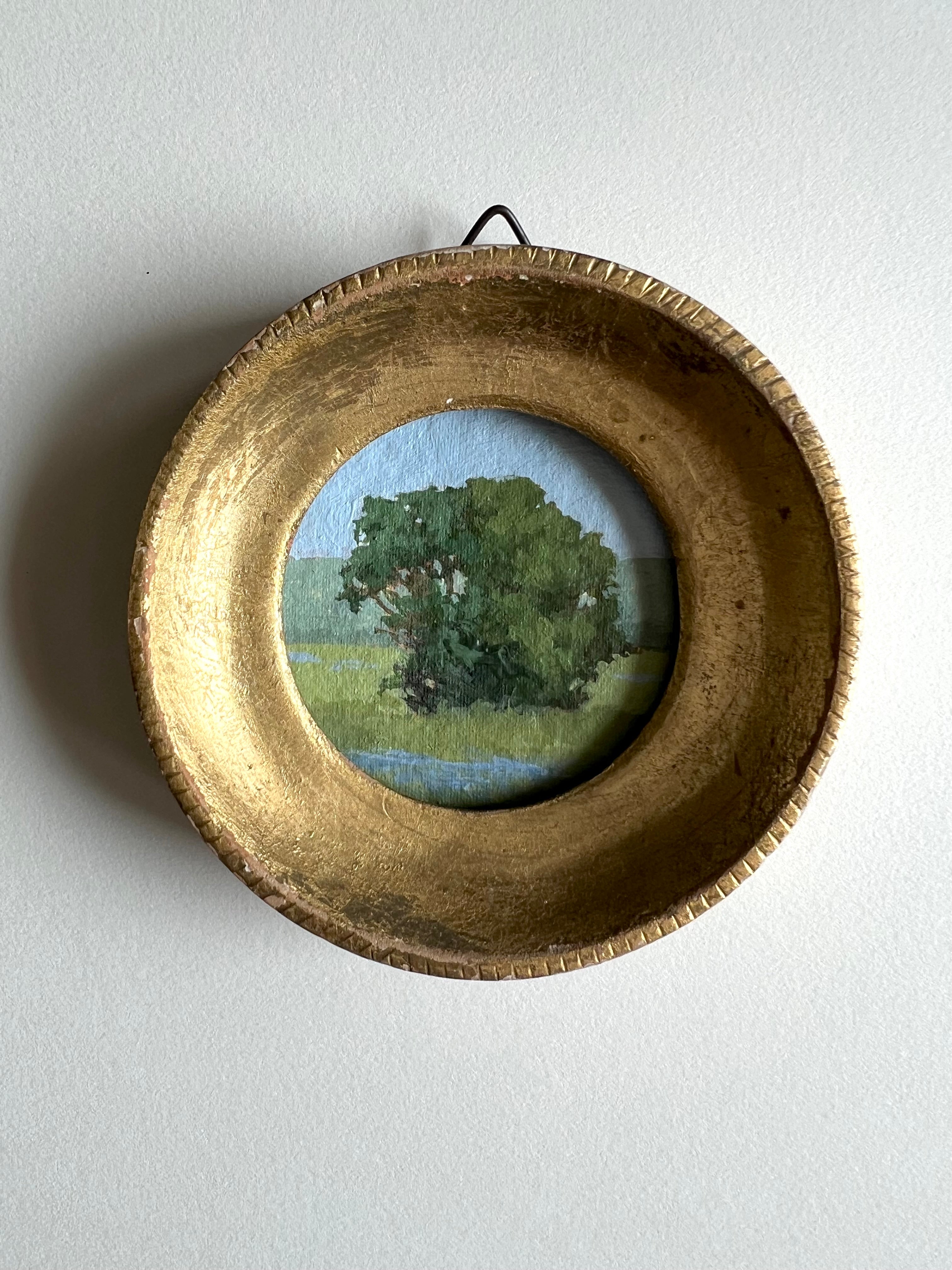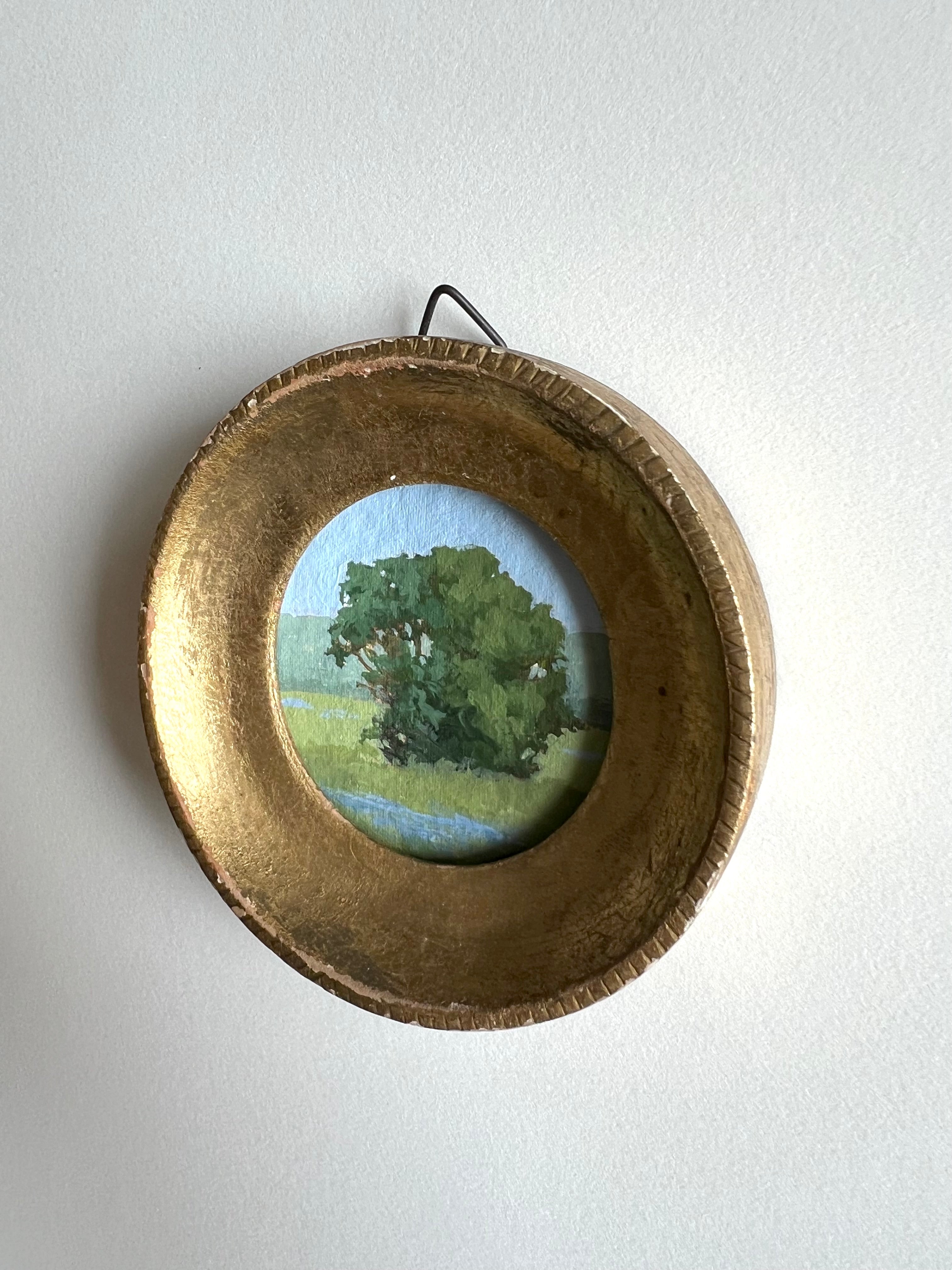Jennifer was born in Jackson MS and moved to Nashville as a child. She enjoyed art as a child and painted with oils a bit as a teen, but ultimately went to MTSU to earn a degree in nutrition. Jennifer didn’t truly begin painting again until her children were in school full time, and started simply by painting pieces she wanted to hang in her own home. Discovering a love for vintage and antique frames (not to mention looking for these frames both in-person and online), she began pairing them with her favorite paintings. She paints primarily in acrylics on handmade paper. “I love the juxtaposition of a vintage/antique frame with the freshness of a modern landscape on textured handmade paper; the marriage of that tradition and history combined with the fresh clean colors in my pieces brings me joy.” She finds inspiration in clouds and trees and the hunt for the perfect vintage frame. Jennifer lives in Nashville with her husband and two boys.