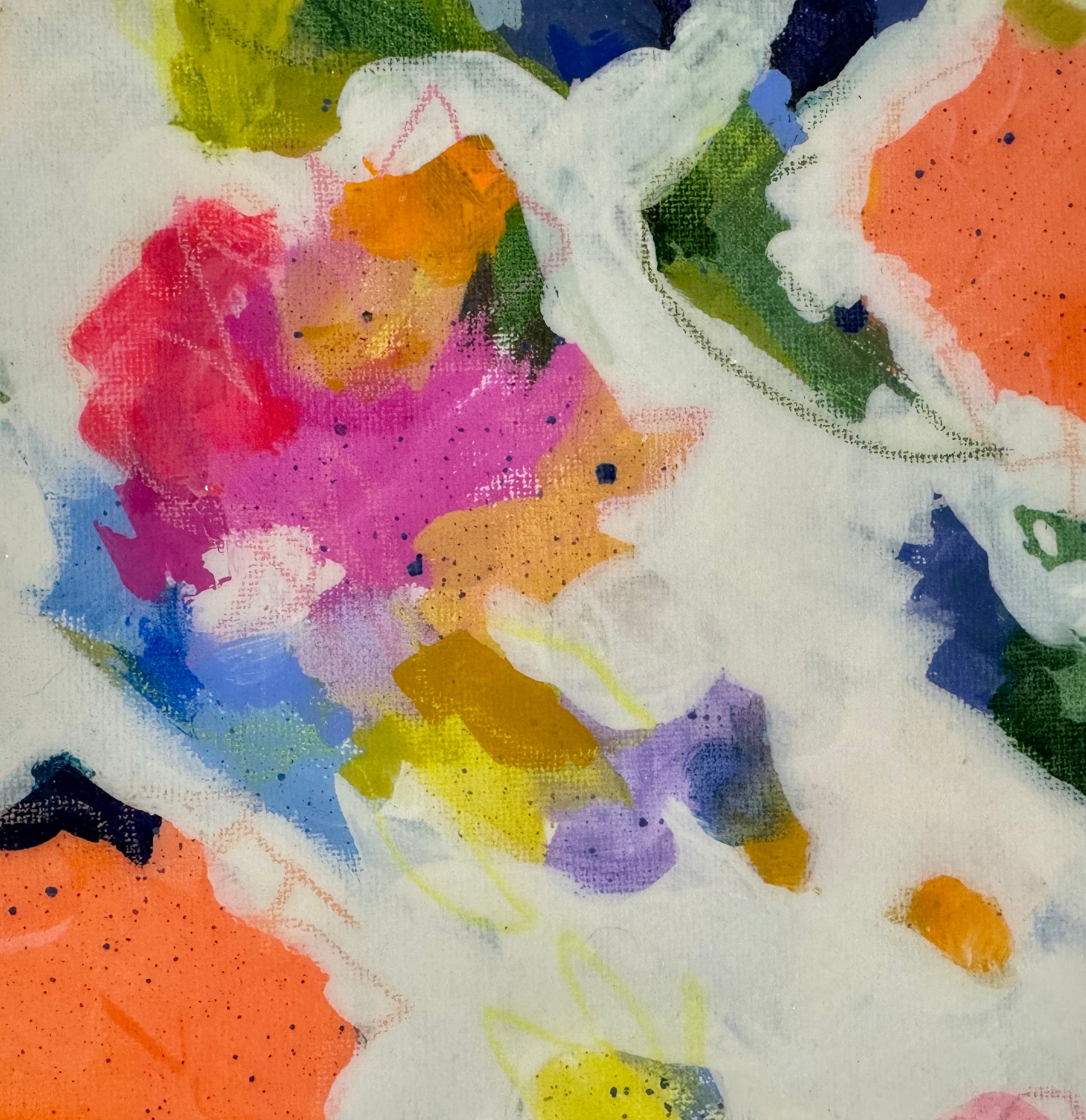 acrylic and mixed media canvas, in white floater frame