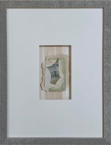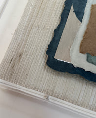 acrylic and handmade paper collage, in lucite shadowbox frame