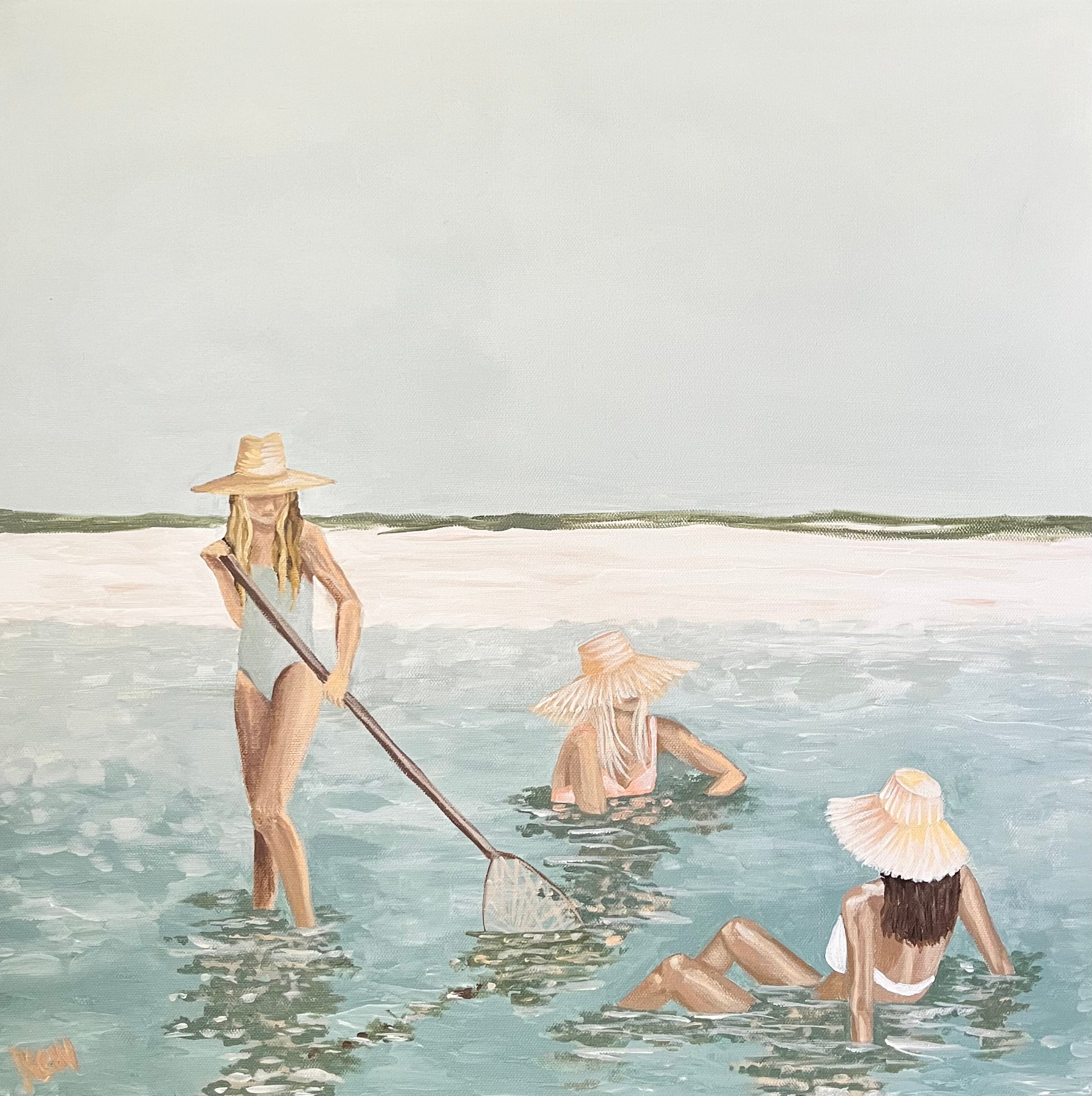 Pensacola based artist, Kelly Whibbs, finds her inspiration right at home on the Gulf Coast. The vibrant beauty and serene energy of her coastal town is infused into her work through layers of color and texture. Most of Kelly’s works are acrylic on canvas and feature organic forms one might find near the sea. She is probably most well known for her paintings of palms, which are featured in many of her collectors’ homes and businesses. Her most recent works are influenced by her seashell collection from a lifetime of beachcombing on Pensacola Beach and Maryland’s Eastern Shore. Kelly enjoys experimenting with scale and light, inviting the viewer to step forward and take a closer look. When she is not painting, Kelly can be found spending time with her husband, their three little boys, and their dog, Chessy. They are on the water whenever possible- whether boating, catching crabs, fishing, or just having themselves a beach day.