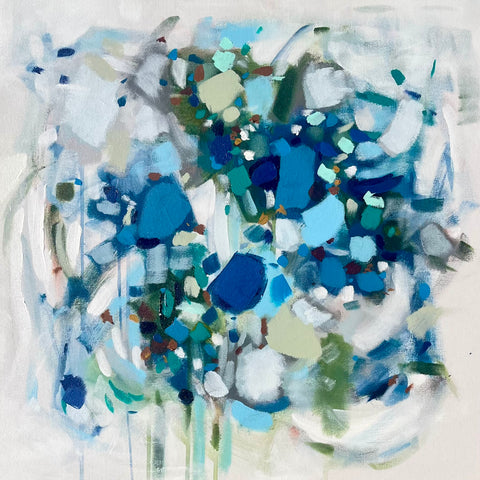 Michele James is an abstract painter known for her large works on canvas. She is inspired by color and movement and uses strong brushstroke and varied marks on neutral canvases with pops of bold colors. She paints with acrylics , and uses chalk, oil pastels and pencil to vary the texture and medium of her works. She is influenced by the colors in nature, the lightness and space of the sky, and the texture and depth of landscapes. “I love to make people happy and for a client to add my painting to their home is wonderful compliment” Michele received a BFA in fine art and art history at Hunter College in New York, NY with a concentration in studio painting. Michele paints out of her home studio in Atlanta where she lives with her husband and three kids.