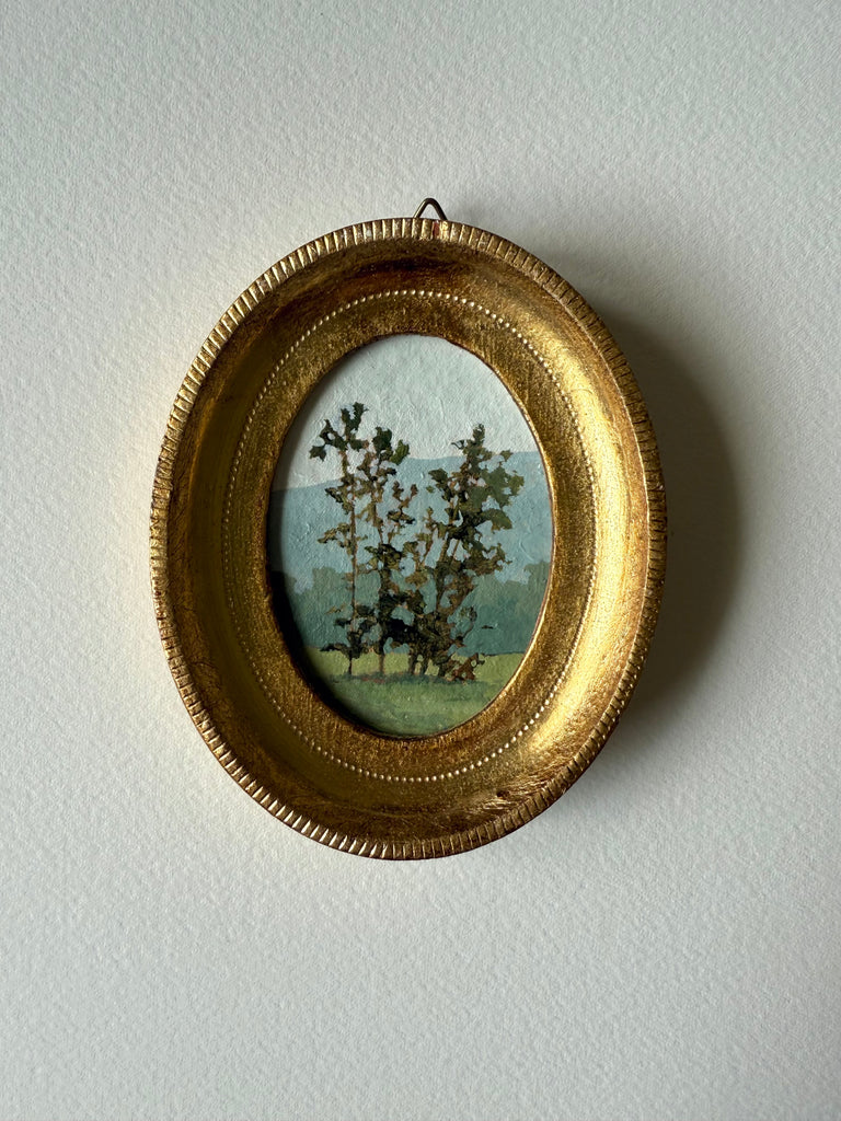 Jennifer was born in Jackson MS and moved to Nashville as a child. She enjoyed art as a child and painted with oils a bit as a teen, but ultimately went to MTSU to earn a degree in nutrition. Jennifer didn’t truly begin painting again until her children were in school full time, and started simply by painting pieces she wanted to hang in her own home. Discovering a love for vintage and antique frames (not to mention looking for these frames both in-person and online), she began pairing them with her favorite paintings. She paints primarily in acrylics on handmade paper. “I love the juxtaposition of a vintage/antique frame with the freshness of a modern landscape on textured handmade paper; the marriage of that tradition and history combined with the fresh clean colors in my pieces brings me joy.” She finds inspiration in clouds and trees and the hunt for the perfect vintage frame. Jennifer lives in Nashville with her husband and two boys.