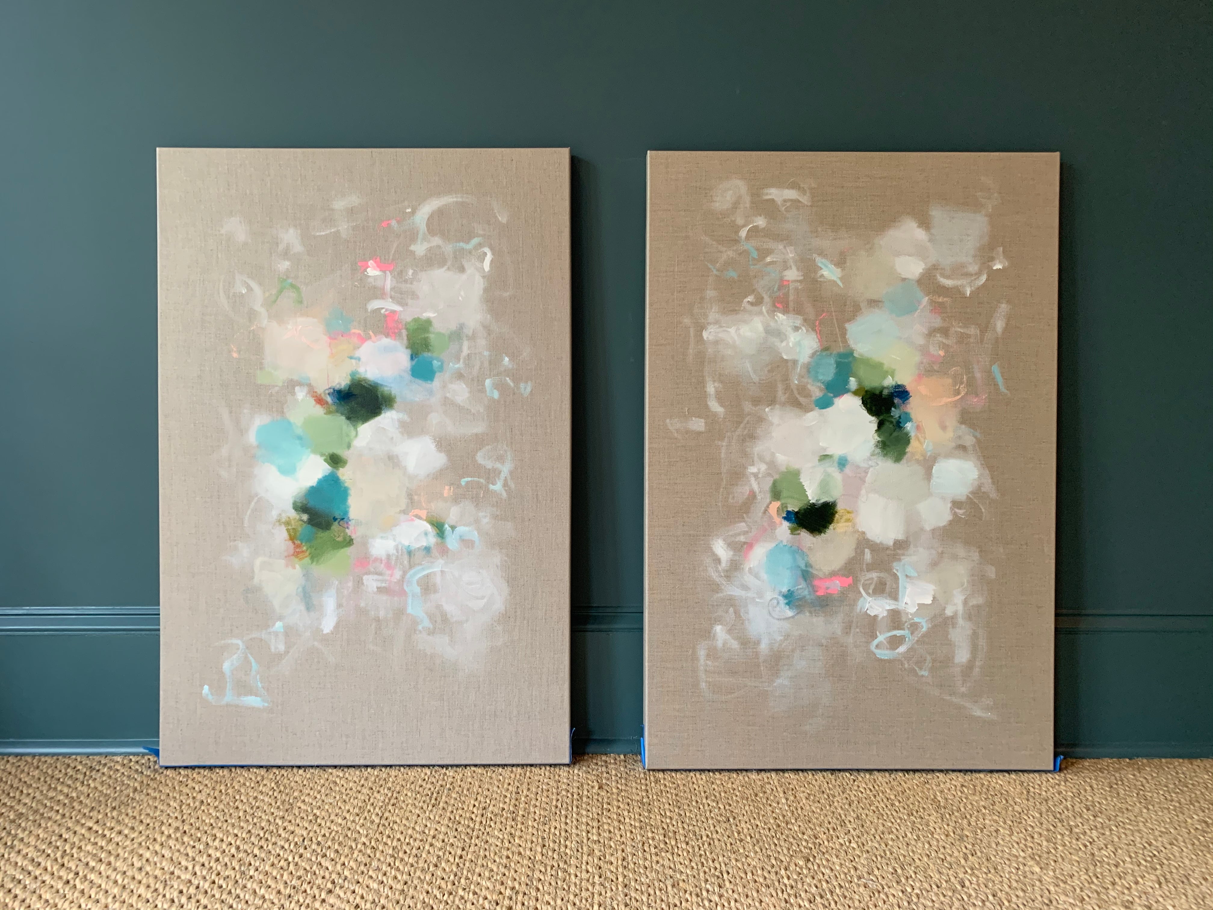 Michele James is an abstract painter known for her large works on canvas. She is inspired by color and movement and uses strong brushstroke and varied marks on neutral canvases with pops of bold colors. She paints with acrylics , and uses chalk, oil pastels and pencil to vary the texture and medium of her works. She is influenced by the colors in nature, the lightness and space of the sky, and the texture and depth of landscapes. “I love to make people happy and for a client to add my painting to their home is wonderful compliment” Michele received a BFA in fine art and art history at Hunter College in New York, NY with a concentration in studio painting. Michele paints out of her home studio in Atlanta where she lives with her husband and three kids.