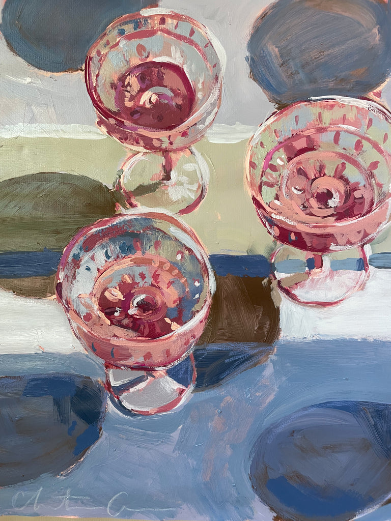 Christine hopes to create artwork that strikes the balance of fun and timeless, in an effortless manner. Composition and color harmony are a distinctive part of her work. Her palettes and subject matter are heavily influenced by her upbringing along the east coast of Florida. She hopes to bring everyday scenes to life through a new perspective and unexpected moments of color. Christine paints entirely from the three primaries (red, yellow + blue) and white. This has helped her gain a strong understanding of color theory.