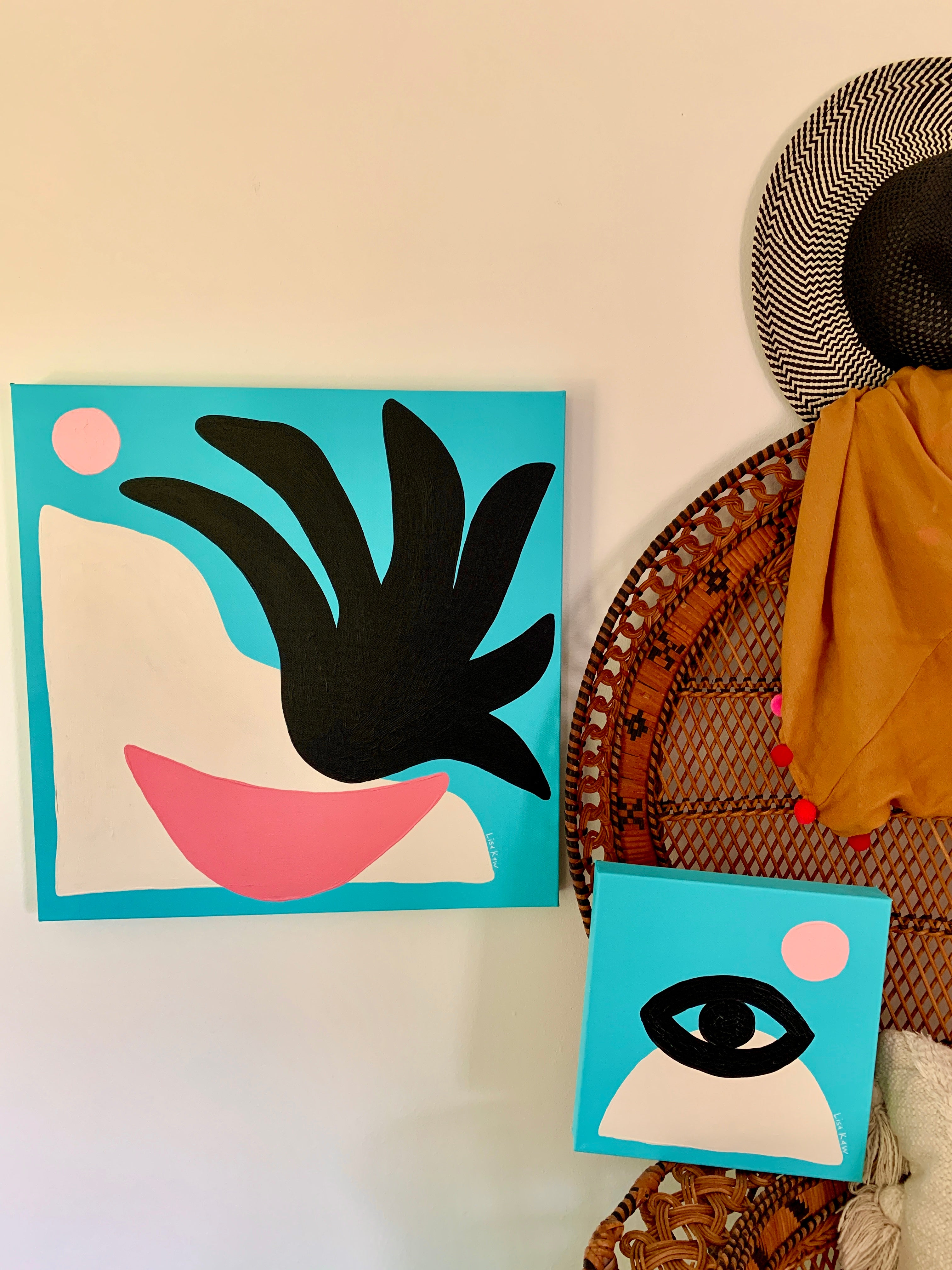 Totally tropical Lisa Kaw shares her love for nature and travel through her vibrant paintings. From her South Florida jungalow, she uses acrylic on canvas to transform the beauty around her into tangible one of a kind treasures. A minimalist at heart, Lisa thrives best when surrounded only by the blues and greens of the natural world and the curious melody of the rainforest chatter. Bali and the Big Island of Hawaii are her most sacred visited places. With a playful palette and a joyful spirit, Lisa Kaw creates work that simply and purely communicates the wonder of our natural world.