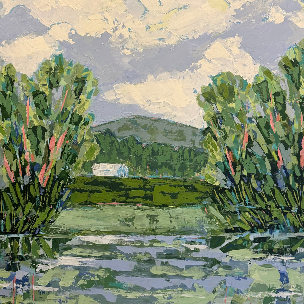 Lindsey’s paintings are an escape and journey - a time to relish the process of creativity: the brush strokes, the layers, the juxtaposition of colors. She works primarily with acrylic paints for their intensity of color and the ability to layer and create textures with various acrylic mediums and gels. A native of Lynchburg, Virginia, Lindsey’s landscapes generally focus on special places that she has known all her life, including fields at the foot of the Blue Ridge Mountains and the pristine beauty of the Cowpasture River. Working from onsite sketches and photographs, she mixes observations with her own personal memories and feelings of how she perceives a place. In addition to being an artist, Lindsey is a full-time art educator, wife, and mother of two young children.