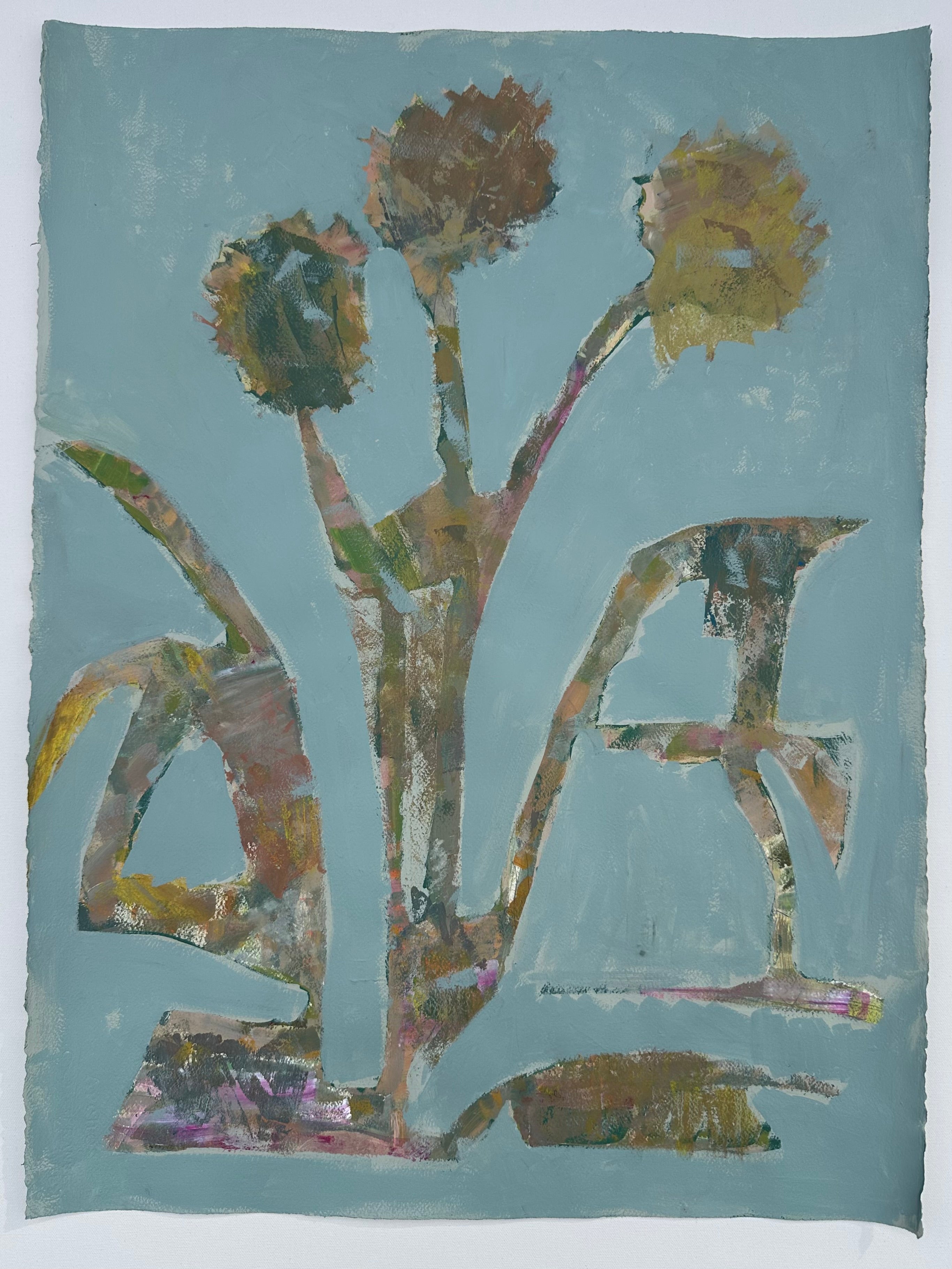 Margaret Meredith is an abstract painter working in acrylic and mixed media. Her work explores emotional atmosphere through layered surfaces, intuitive mark‑making, and a palette that balances moody, muted tones with moments of vivid color. Her recent work builds on botanical themes first explored in 2023, suggesting organic growth and memory rather than literal representation. Alongside this, Meredith has created minimalist, encaustic-medium, and collage‑based works that continue to inform her layered approach. Currently, she is focused on acrylic painting, embracing its fluidity and the freedom to work with water. Pencil marks, printed elements, stencils, and hand‑made tools play an ongoing role in her process, reflecting her love of printmaking and experimental mark‑making. Margaret Meredith lives and works in Columbus, Georgia, with her husband, a woodworker and mushroom farmer, and their two sons.