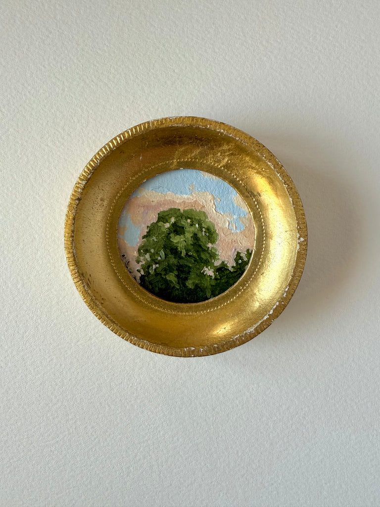 Jennifer was born in Jackson MS and moved to Nashville as a child. She enjoyed art as a child and painted with oils a bit as a teen, but ultimately went to MTSU to earn a degree in nutrition. Jennifer didn’t truly begin painting again until her children were in school full time, and started simply by painting pieces she wanted to hang in her own home. Discovering a love for vintage and antique frames (not to mention looking for these frames both in-person and online), she began pairing them with her favorite paintings. She paints primarily in acrylics on handmade paper. “I love the juxtaposition of a vintage/antique frame with the freshness of a modern landscape on textured handmade paper; the marriage of that tradition and history combined with the fresh clean colors in my pieces brings me joy.” She finds inspiration in clouds and trees and the hunt for the perfect vintage frame. Jennifer lives in Nashville with her husband and two boys.