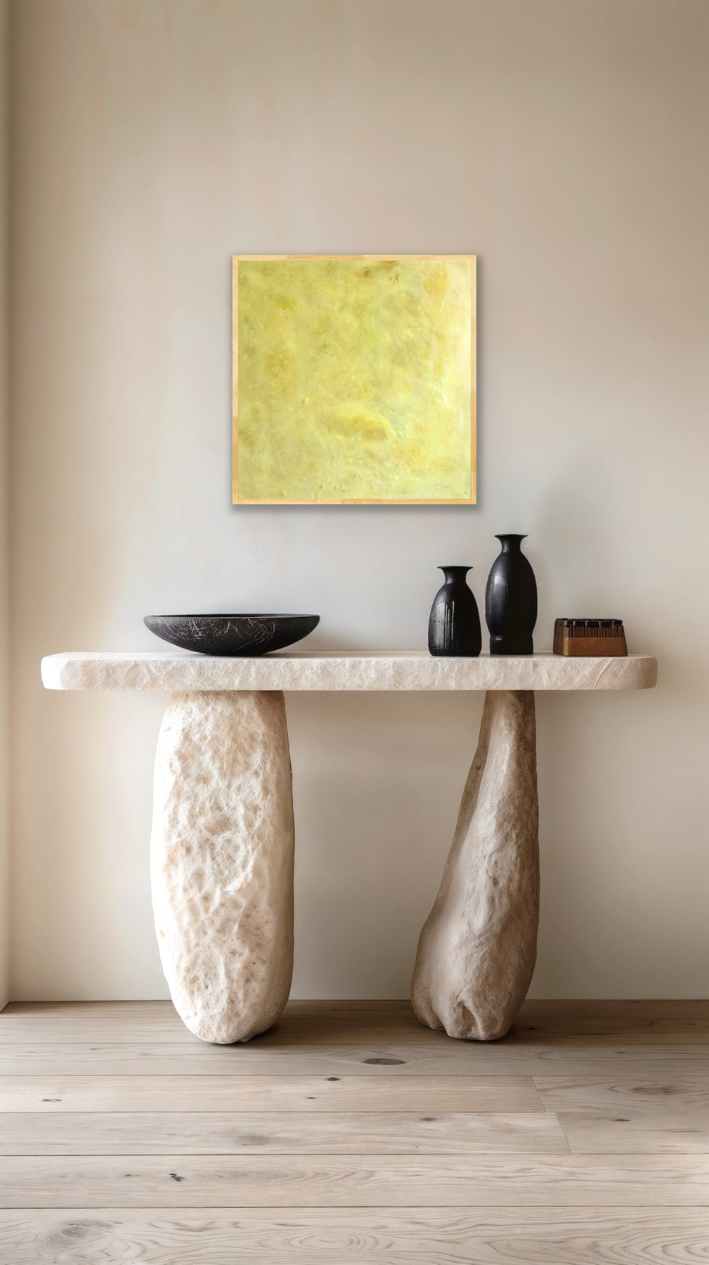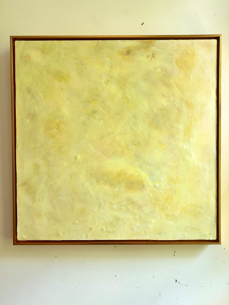 encaustic on wood, framed in gold frame