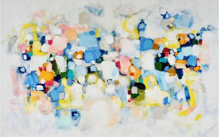 Michele James is an abstract painter known for her large works on canvas. She is inspired by color and movement and uses strong brushstroke and varied marks on neutral canvases with pops of bold colors. She paints with acrylics , and uses chalk, oil pastels and pencil to vary the texture and medium of her works. She is influenced by the colors in nature, the lightness and space of the sky, and the texture and depth of landscapes. “I love to make people happy and for a client to add my painting to their home is wonderful compliment” Michele received a BFA in fine art and art history at Hunter College in New York, NY with a concentration in studio painting. Michele paints out of her home studio in Atlanta where she lives with her husband and three kids.