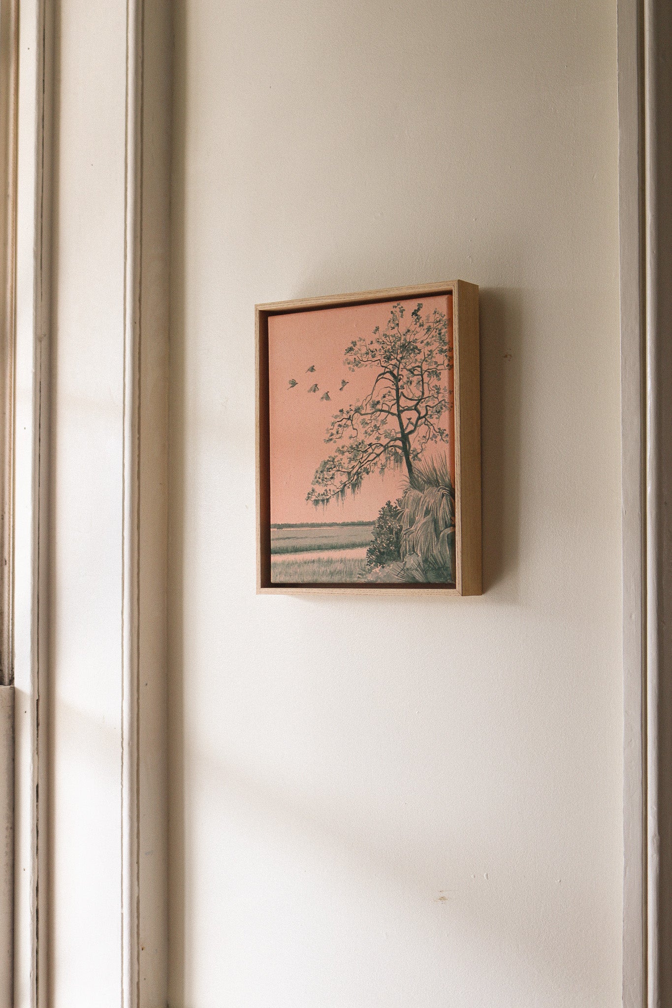 Much of Sarah Schools’ work reflects the warm, seasonal glow of the Carolinas. As both an oil painter and watercolor artist, she finds joy in discovering color in unexpected places—whether it's the dreaminess of golden hour, the soft depth of a cornflower blue shadow, or the delicate light that appears when the sun hits just right. Her creative process often involves experimenting with color to convey mood and atmosphere, layering bright hues and subtle tones with careful detail. Recently, she has been especially drawn to the flora and fauna of the Southeast, capturing native plants, trees, and the wildlife that inhabit them.