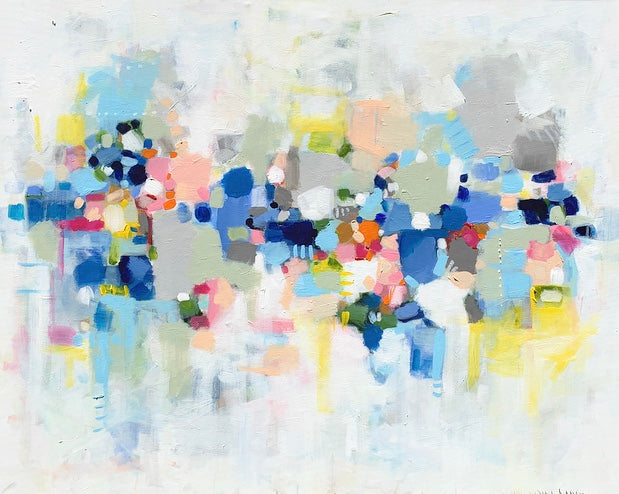 Michele James is an abstract painter known for her large works on canvas. She is inspired by color and movement and uses strong brushstroke and varied marks on neutral canvases with pops of bold colors. She paints with acrylics , and uses chalk, oil pastels and pencil to vary the texture and medium of her works. She is influenced by the colors in nature, the lightness and space of the sky, and the texture and depth of landscapes. “I love to make people happy and for a client to add my painting to their home is wonderful compliment” Michele received a BFA in fine art and art history at Hunter College in New York, NY with a concentration in studio painting. Michele paints out of her home studio in Atlanta where she lives with her husband and three kids.