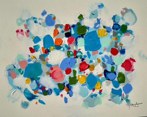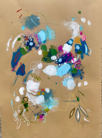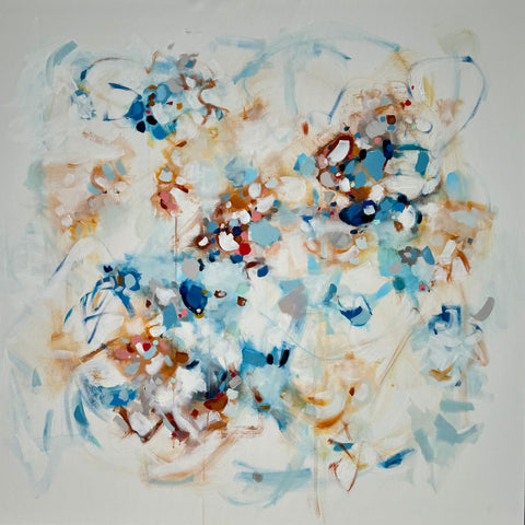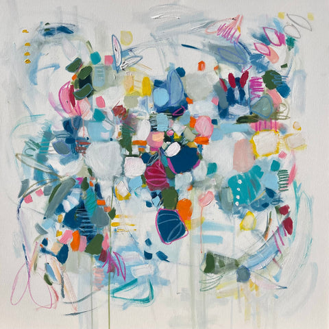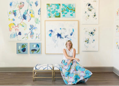 Michele James is an abstract painter known for her large works on canvas. She is inspired by color and movement and uses strong brushstroke and varied marks on neutral canvases with pops of bold colors. She paints with acrylics , and uses chalk, oil pastels and pencil to vary the texture and medium of her works. She is influenced by the colors in nature, the lightness and space of the sky, and the texture and depth of landscapes. “I love to make people happy and for a client to add my painting to their home is wonderful compliment” Michele received a BFA in fine art and art history at Hunter College in New York, NY with a concentration in studio painting. Michele paints out of her home studio in Atlanta where she lives with her husband and three kids.