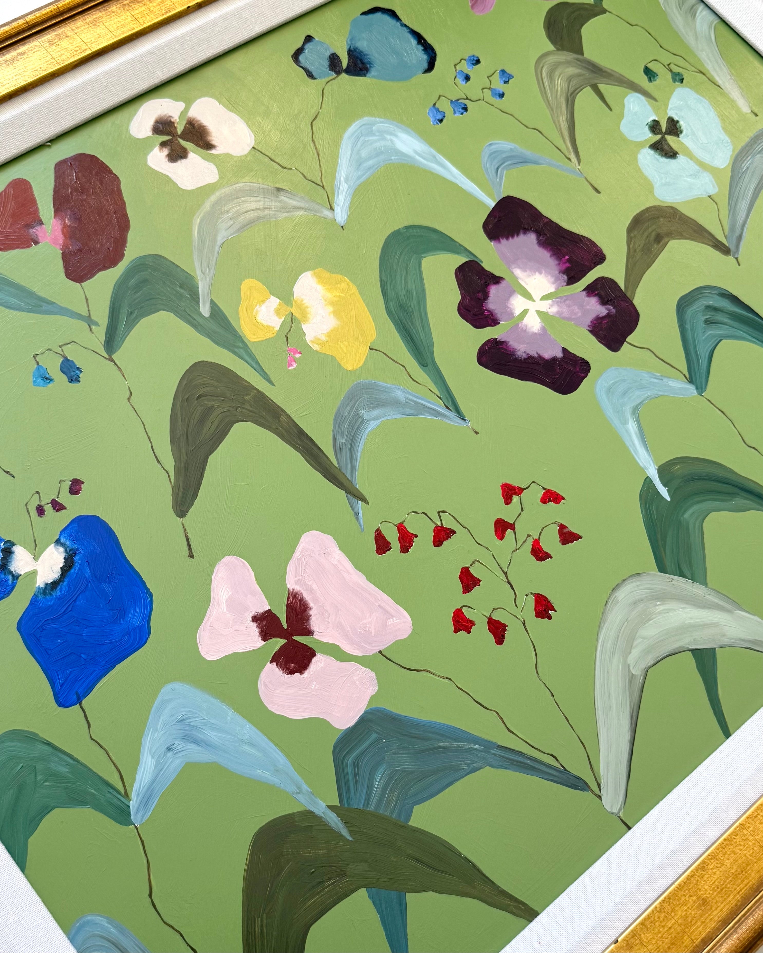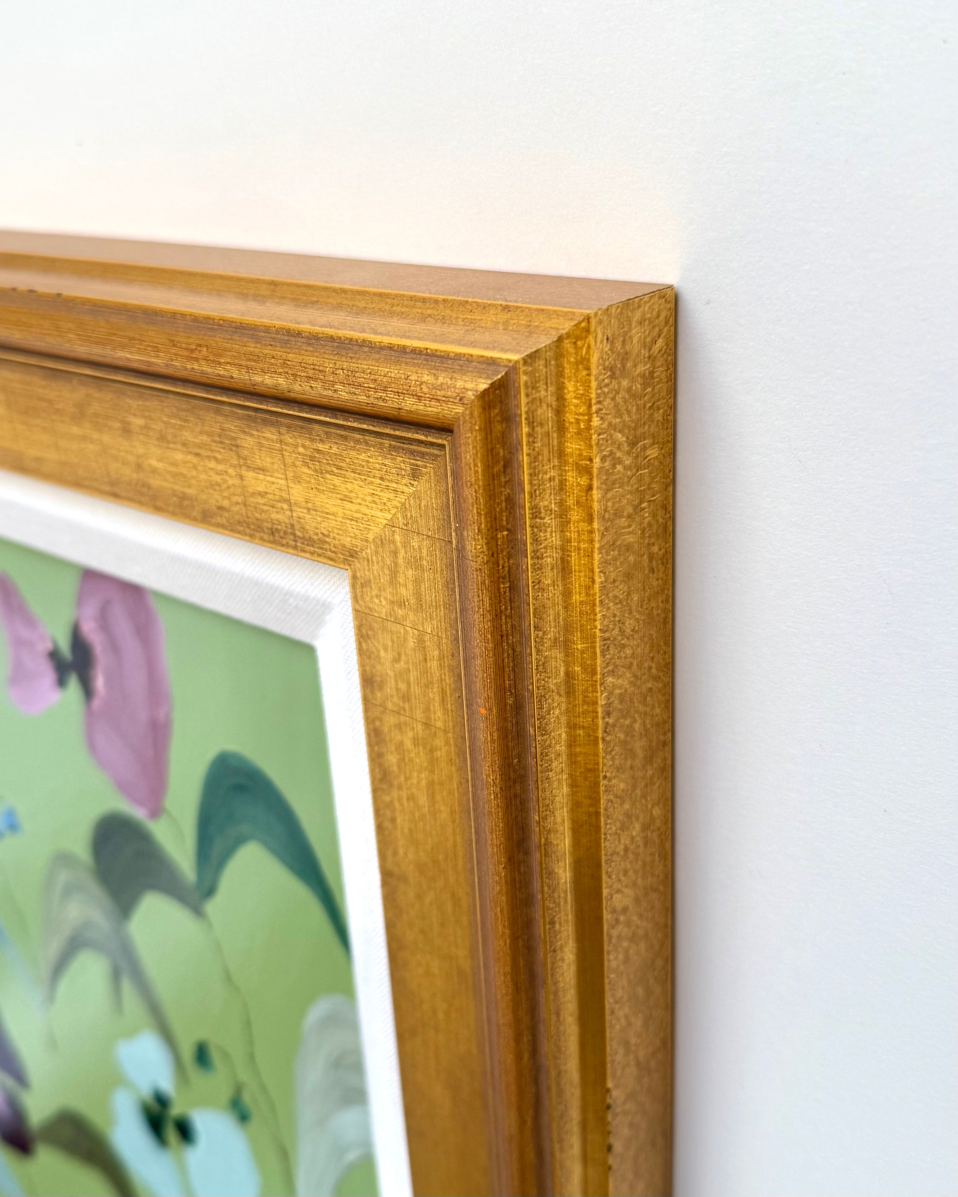 acrylic on panel, in gold frame with linen mat