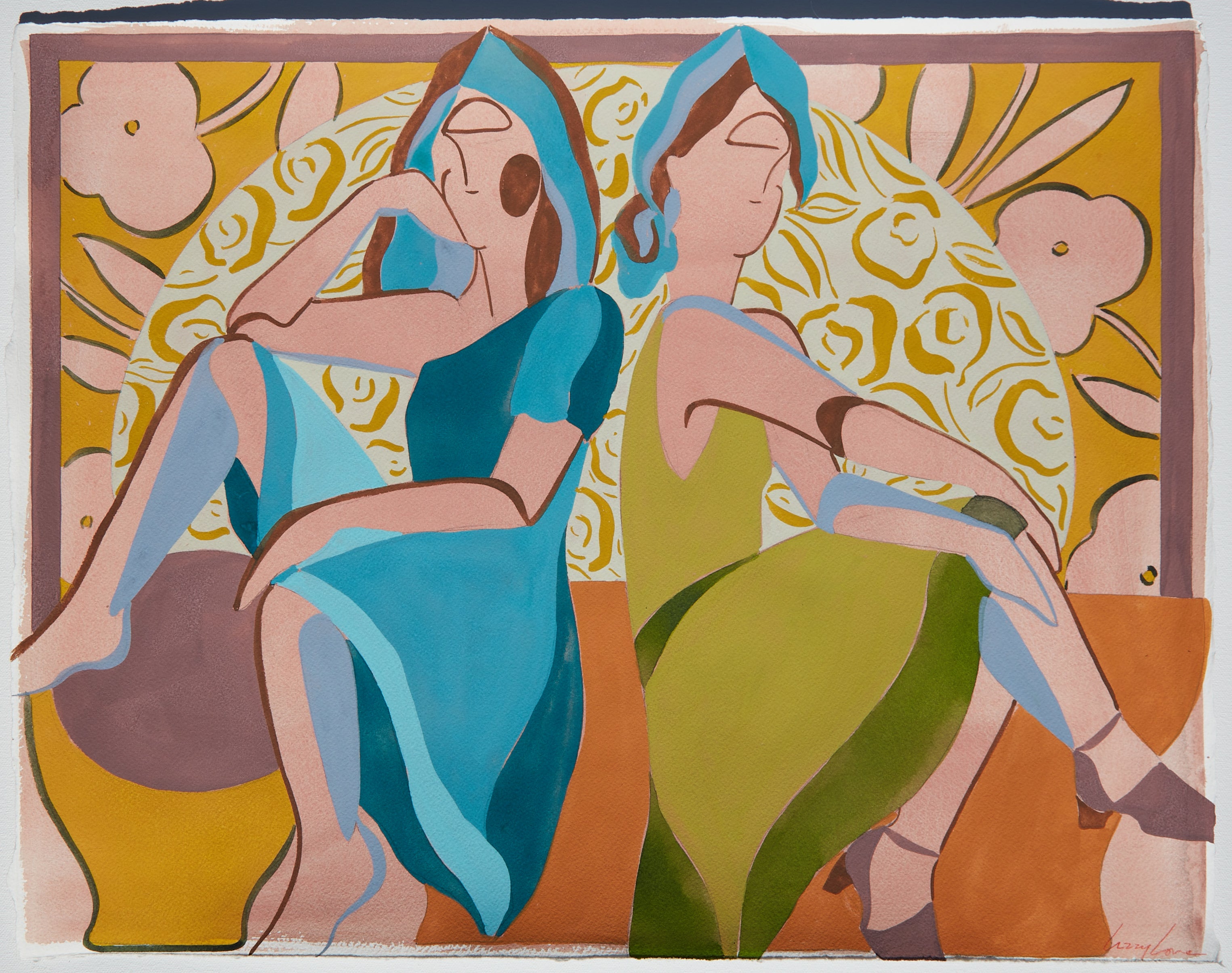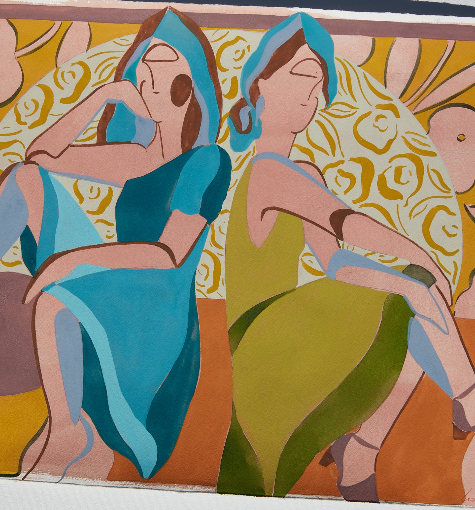 My name is Lizzy Love and I'm an artist in Nashville, TN. I create figurative works on canvas with acrylic paint and papers with watercolor and gouache. This body of work has been a rebirth for me creatively. While I've been painting full time for the last 5 years, I feel like I've really come into myself creatively with my figurative paintings. Born out of a time of uncertainty and lots of questioning, I was pushed to dig deep and get back to basics. I decided to switch gears from painting the landscapes, for which I had been primarily making for years. As an effort to get my creative spark back, I started sketching figures from magazines, a subject I hadn’t explored in a long time. Over many months they slowly evolved into what they have become; starting from detailed and realistic, to more abstract and modernist. I am a big believer that the environment of your home shapes your attitude, and for that reason I love interior design. That love is what led me to start incorporating furniture / interior surroundings / and patterns into the pieces. I pull apart and put back together the lines and shapes of many of my favorite interiors, and place them amongst the figures in a dynamic way. These ladies embody many things - community, respect, femininity, reverence. They are a way to draw attention to what being a woman entails. Many times it means being fierce and strong. Many times it means leaning on and drawing your strength from friends that are like family. While creating each piece, I draw upon the love and reverence I have for all the women in my life; the women who have shaped me, lifted me up when I needed it, laughed with me, and inspired me.