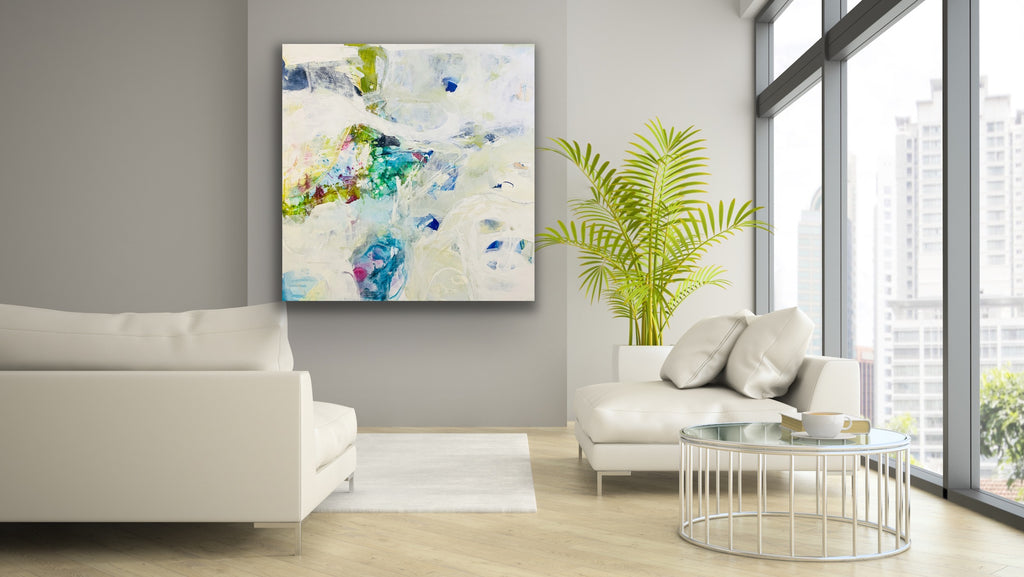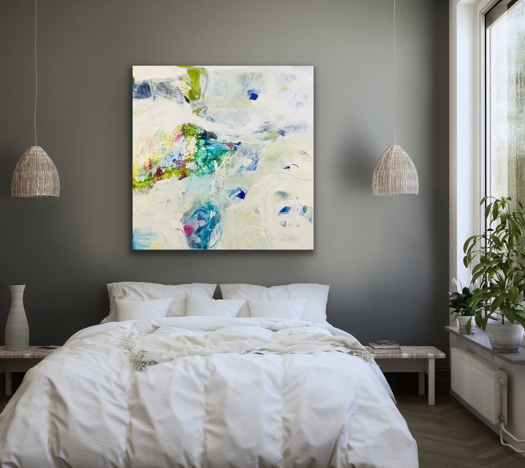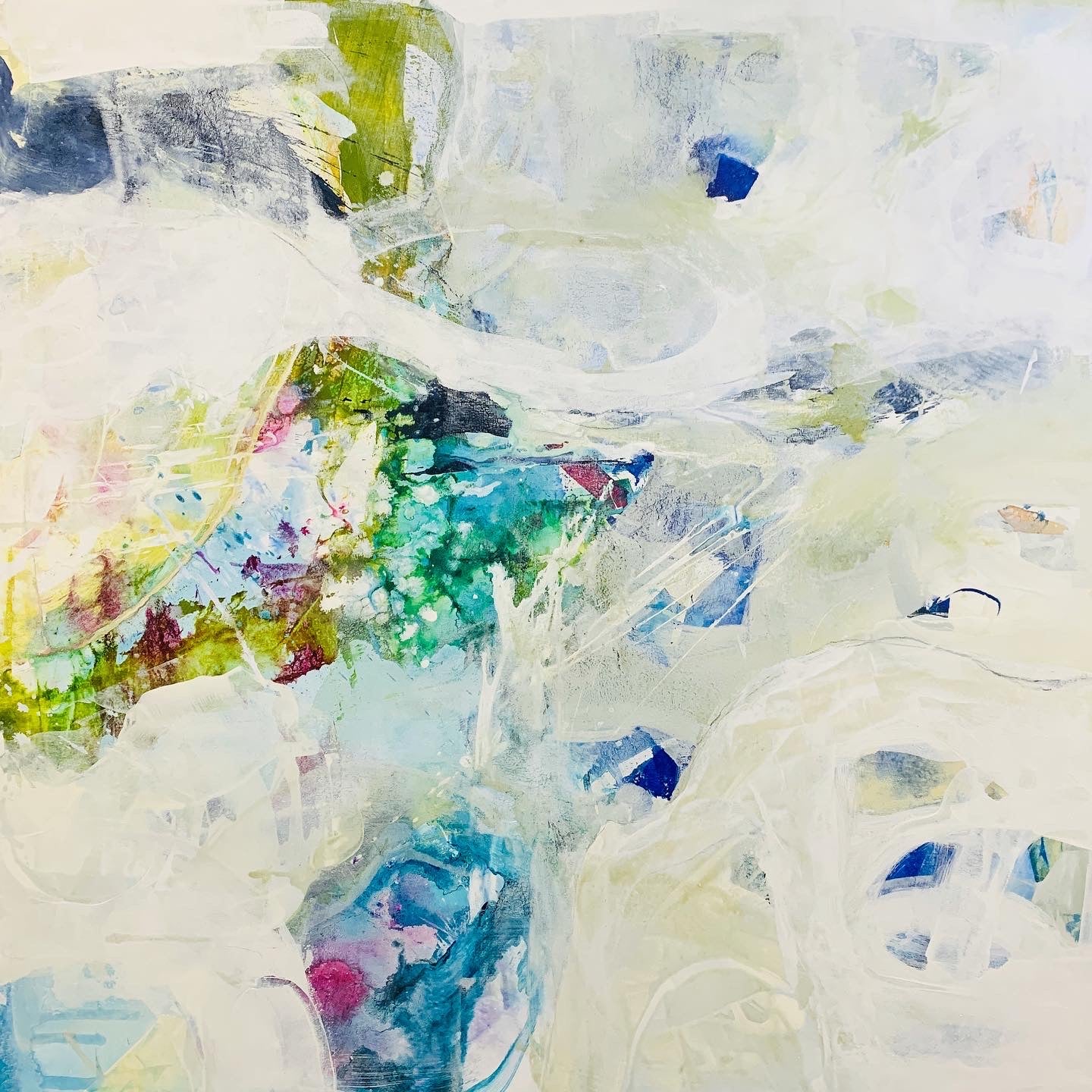 I find ultimate freedom in abstract expressionism and as such, I’m in search of the best way to convey who I am at the moment of creating. It is not to say it is a free-for-all; there is still structure within. I implement the same principles that realist painters employ with the absence of representation: composition, hierarchy, variety, juxtaposition are vital to a successful painting. But I do not limit myself to one medium or the other. I work in oil, acrylics and gouache and depending on what I’m exploring at the time I will choose one or more to express it. I also explore through a combination of paint and collage. It is through all of these various methods and mediums that I am able to share my fullest expression of self and my authenticity. My paintings ultimately are self portraits that are created from both past experiences and also future hopes and dreams. It is my goal to invoke a feeling for the viewer. When it does I have succeede
