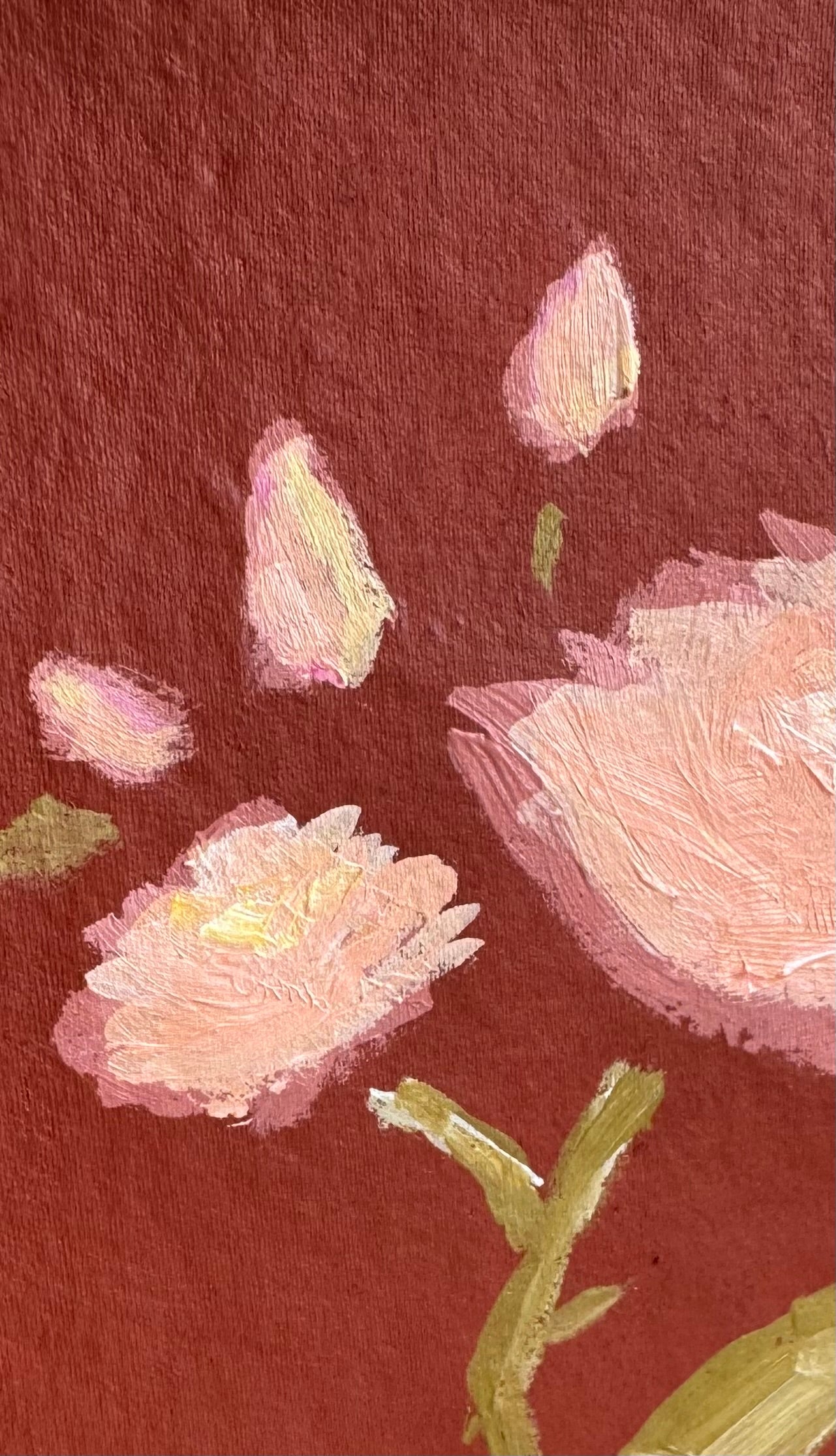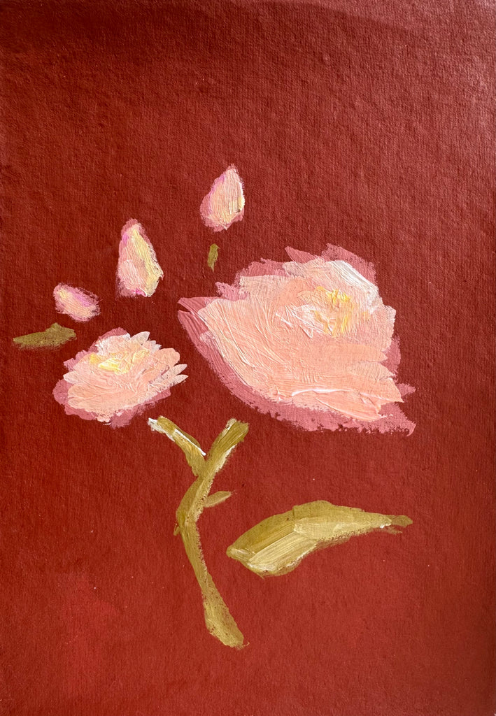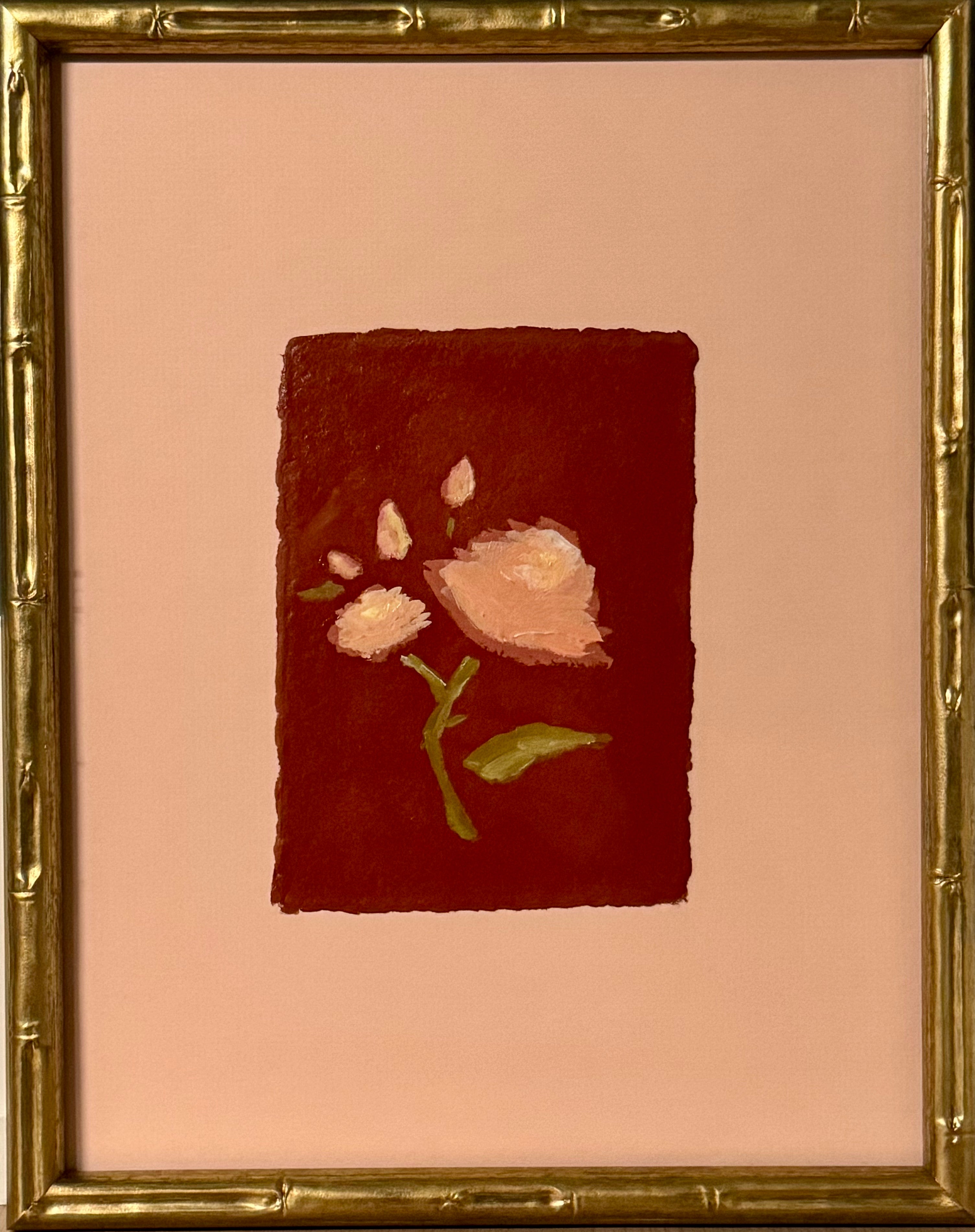 acrylic on deckled edge paper, framed in gold bamboo frame with blush mat
