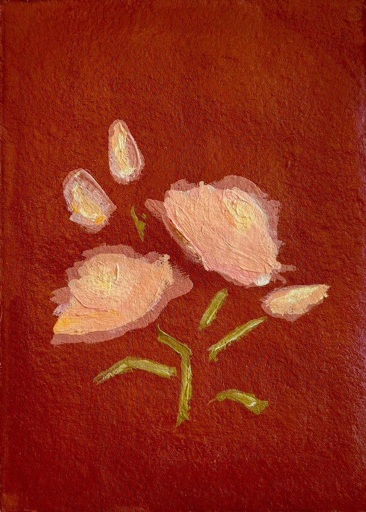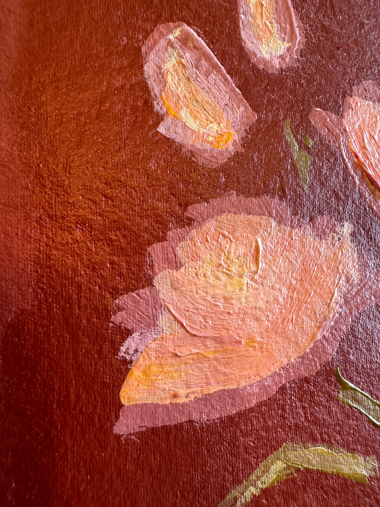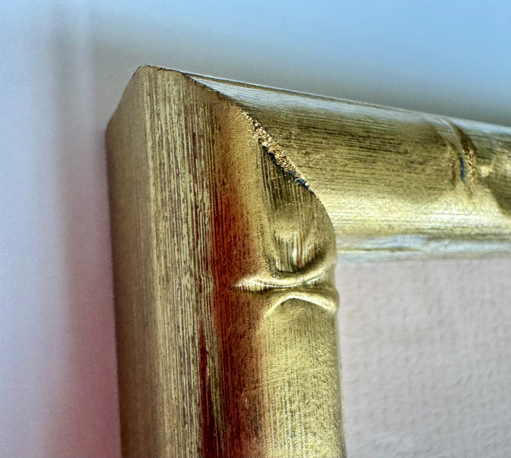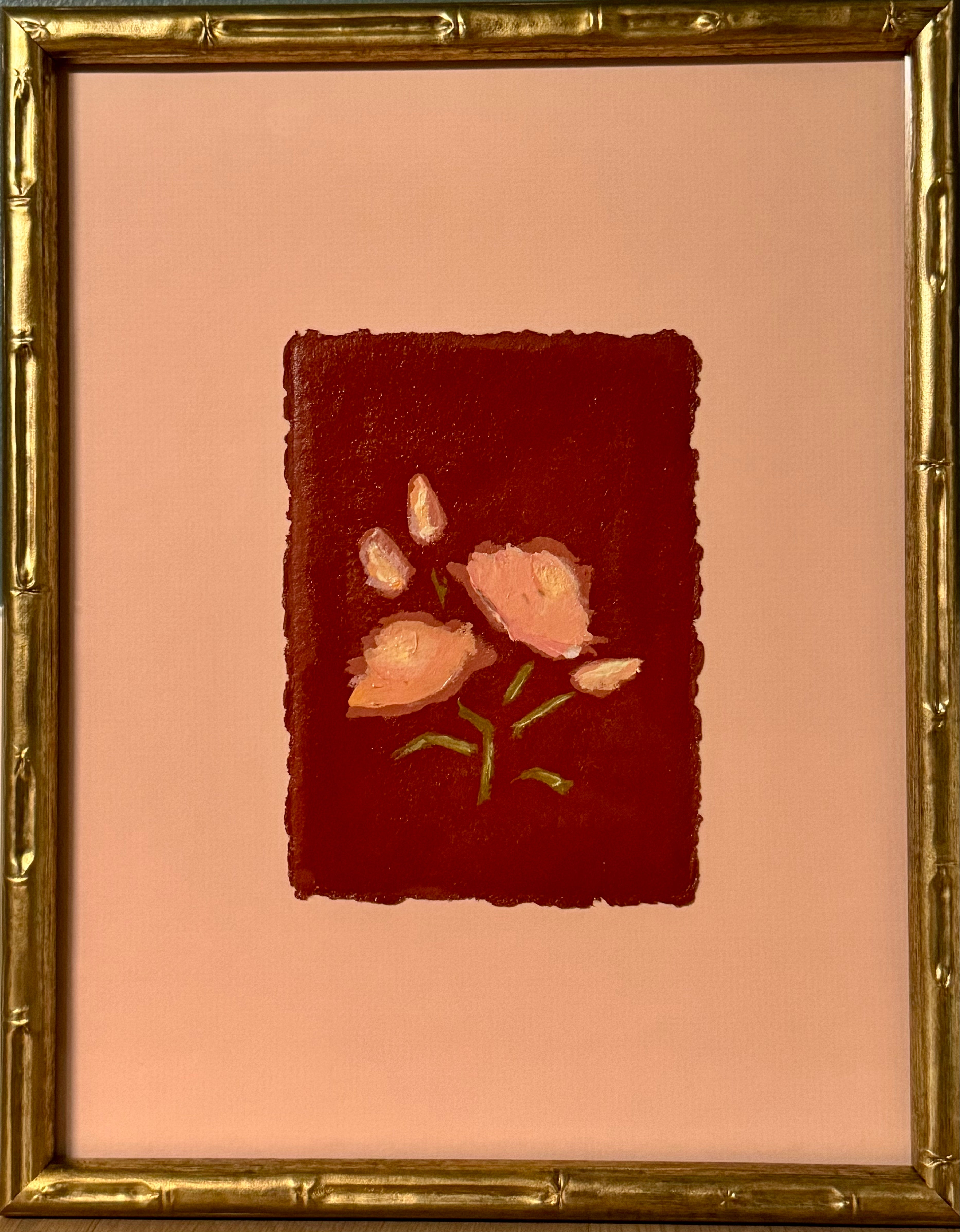 acrylic on deckled edge paper, framed in gold bamboo frame with blush mat